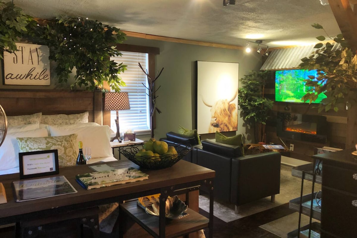 Будинок на дереві - це приватний відпочинок для пари, яка хоче відчути магію. Перегляньте відеотури на U-Tube. Введіть «Будинок на дереві в хмарі». На території помешкання було зроблено кілька фільмів та інших фотосесій. Надішліть запит і подробиці в SMS-повідомленні, і ми зможемо домовитися про збори. Інший наш AirBnB знаходиться неподалік; заміські коні неподалік від теми парки [посилання] площею 1000 кв. футів і розраховані на шість місць.
