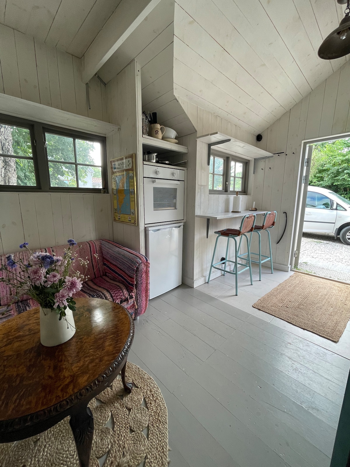 Нещодавно відремонтоване невелике рояль у красивому фермерському середовищі з видом на море в чудовій Хамрі, Готланд * Поруч із Hamra Krog і літньою пекарнею Hamra * 600 метрів до найближчого пляжу * 7 км до курорту Бургсвік * Нижній поверх: диван-ліжко на 2 особи, обідня зона на 4 осіб, ванна кімната з душем та туалетом з водою, шафа, міні-кухня з індукційною плитою, 2 конфорки (без духовки), холодильник/морозильна камера. * Верхній поверх: 2 ліжка (можна з’єднати або розділити), велике мансардне вікно з видом на сад, пасовище для корів і море * Кам 'яне патіо, зовнішні меблі для 4 осіб, барбекю.