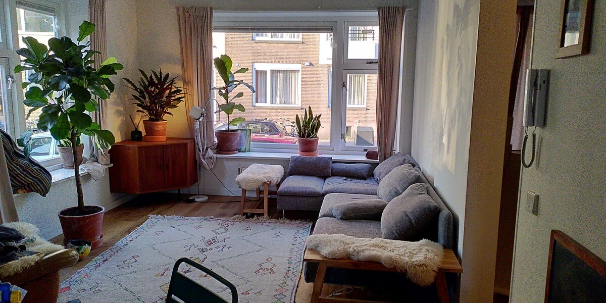 Вітаємо в моєму прекрасному та світлому богемному помешканні в Нордерейленді. Унікальне помешкання в центрі Роттердама . Ви перебуватимете в моїй квартирі площею 75 м2 на першому поверсі, включаючи простору сучасну кухню та вітальню, 2 спальні (1 ліжко розміром King size, 1 дитяче ліжко з гіркою) та ванну кімнату з ванною та душем, сонячний балкон та сад площею 50 м2 на південному заході. І, о: мій кошик для черв 'яків (так, робіть власний компост ;).