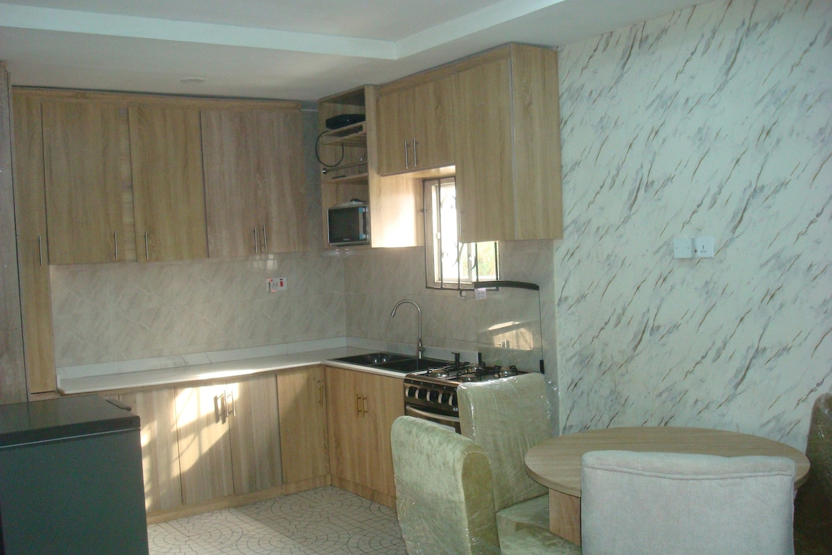 Ця сучасна квартира з двома спальнями розташована в жвавому районі. Це ваш затишний і зручний відпочинок. Завдяки кондиціонеру на сонячних батареях це екологічно чисте помешкання забезпечує комфорт, поки ви відпочиваєте та досліджуєте. Квартира вміщує до чотирьох гостей, пропонуючи двоспальне ліжко розміру King size в одній спальні та двоспальне ліжко розміру Queen size в іншій, забезпечуючи спокійні ночі. Насолоджуйтеся зручністю 2,5 ванних кімнат, зокрема двох кімнат із окремими душовими кабінами, які ідеально підходять для ранкових процедур або відпочинку після дня на вулиці. Готуйте з легкістю на кухні, обладнаній для кулінарних шедеврів, у комплекті з усіма необхідними приладами, щоб втілити в життя ваші улюблені страви. Відкрита вітальня запрошує вас розслабитися, пропонуючи Smart TV та Wi-Fi для розваг або зв’язку. Надається свіжа постільна білизна та рушники, що додає комфорту вашому перебуванню, а зручність спільного саду пропонує спільний простір для насолоди. Скористайтеся безкоштовною парковкою на території, щоб не турбуватися про транспорт. Відкрийте для себе найближчі пам’ятки: аеропорт Бенін (7 хвилин їзди), Національний музей Беніну (10 хвилин їзди), палац Оба (10 хвилин їзди), вулиця Ігун (10 хвилин їзди) та зоопарк і природний парк Огба (25 хвилин їзди). Нехай ця квартира буде вашим спокійним притулком, коли ви досліджуєте та насолоджуєтеся культурним багатством і міським спокоєм поблизу.