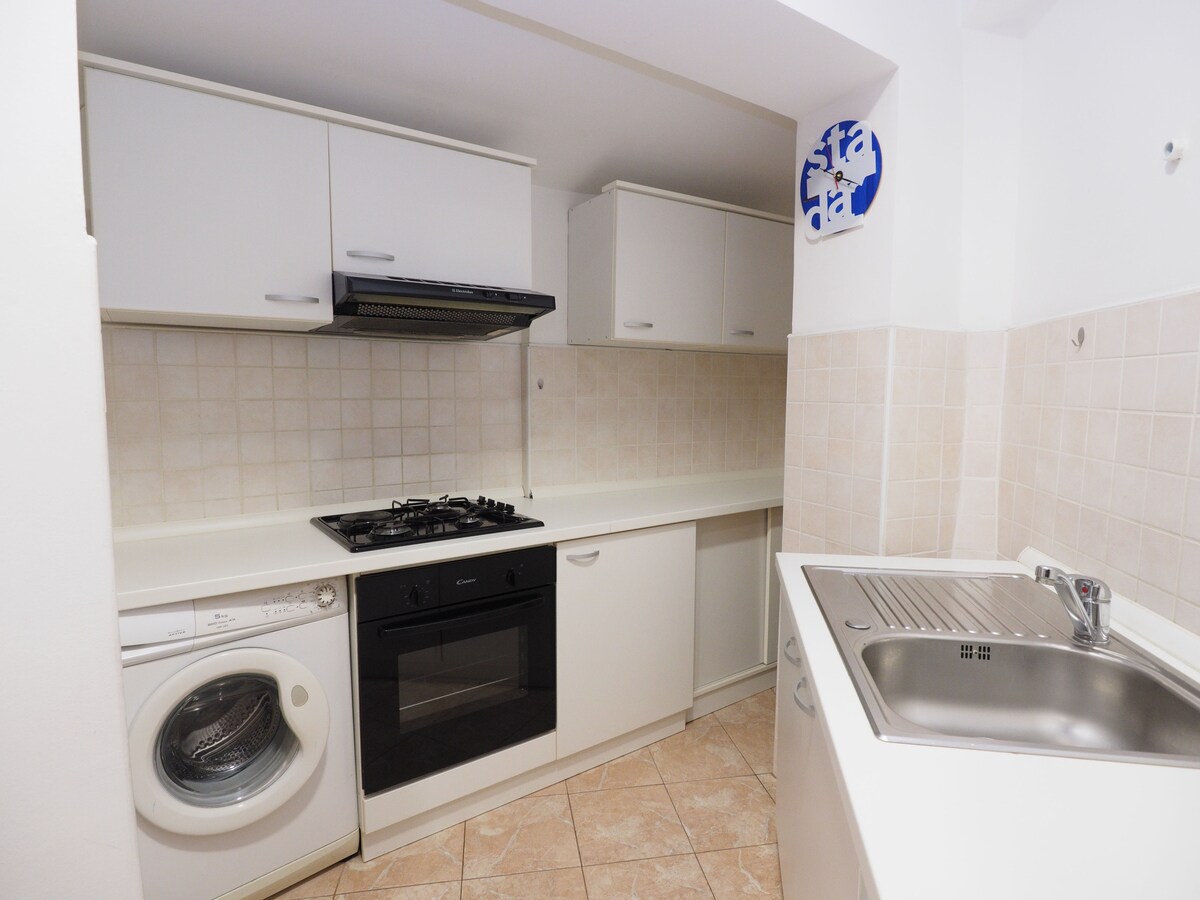 Квартира розташована в районі Кантріда біля відомого футбольного стадіону, на півдорозі між центром Рієки та Опатією, поруч із ресторанами, кафе, пекарнями, торговим центром. З квартири відкривається прекрасний вид на всю Рієцьку затоку та острови. Пляжі знаходяться в 5 хвилинах ходьби. Квартира-студія (25 м2) нещодавно відремонтована і складається з: кімнати, кухні та ванної кімнати. У квартирі є можливість користуватися посудомийною та пральною машинами. Вона обладнана кондиціонером, швидкісним Інтернетом, телевізором...