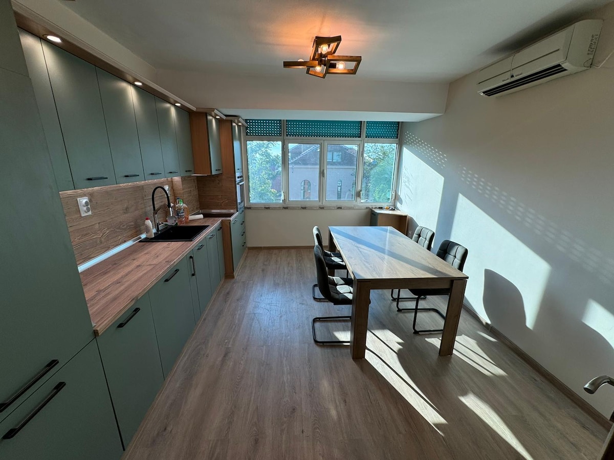 Ласкаво просимо до нашої затишної та світлої квартири, розташованої в центрі Ямбола! Пориньте в справжню атмосферу Болгарії, досліджуючи центр міста - доступний, надихаючий та унікальний досвід у спокійному стародавньому місті з багатою історією. Ви можете почуватися тут як удома. Це функціональна і добре організована квартира, де ви знайдете все необхідне для короткострокового або тривалого візиту.