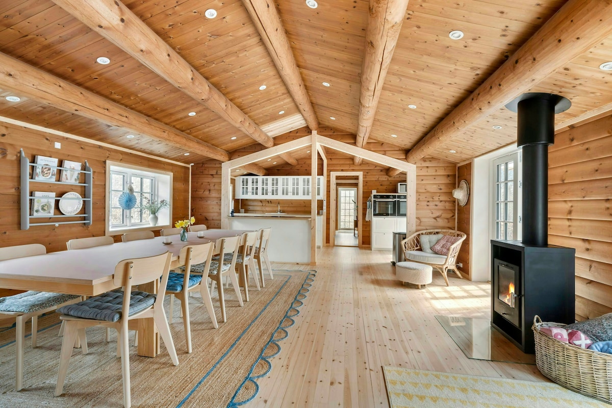 Чудовий будинок для відпочинку розташований за кілька кроків від води та пляжу. Буквально! Тут ви можете прокинутися під ніжний шум хвиль, які ніби кличуть вас на ранкове купання. У теплі дні ви можете насолоджуватися їжею на терасі, де можна насолоджуватися як ранковим сонцем, так і прекрасним краєвидом на захід сонця. Висока стеля всередині створює відчуття простору, що дозволяє родині та друзям насолоджуватися життям разом у будь-яку пору року.