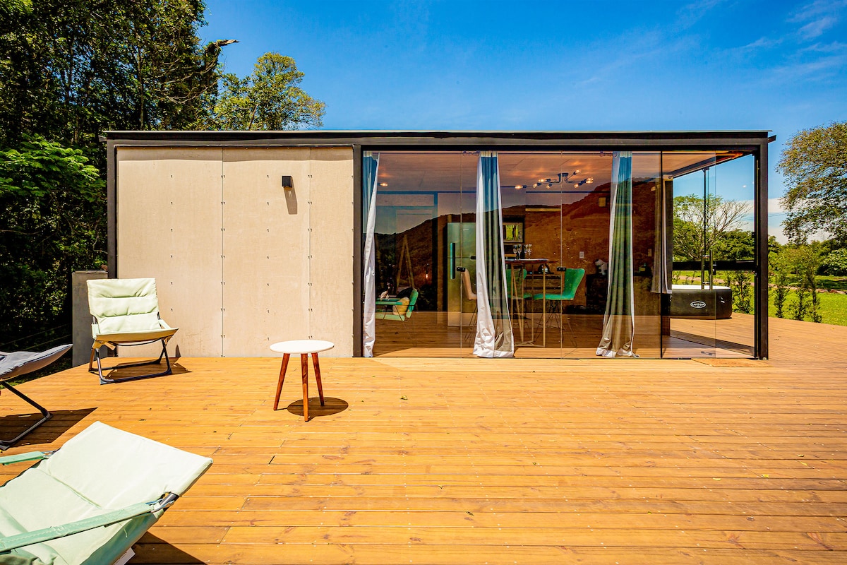 Ласкаво просимо до будинку-студії After the Skyline, сучасного господаря, який поєднує дизайн, мистецтво та багато контакту з природою, з повним комфортом і зручністю. Розташоване в 35 хвилинах від Грамадо/RS, всередині бразильського рафтового парку, в Трес-Короас/RS, ви будете вражені можливістю зупинитися в модульному будинку з інтегрованим середовищем і з дивовижним видом на долину Паранхана, в оточенні річки течій, яка передає спокій і відпочинок.