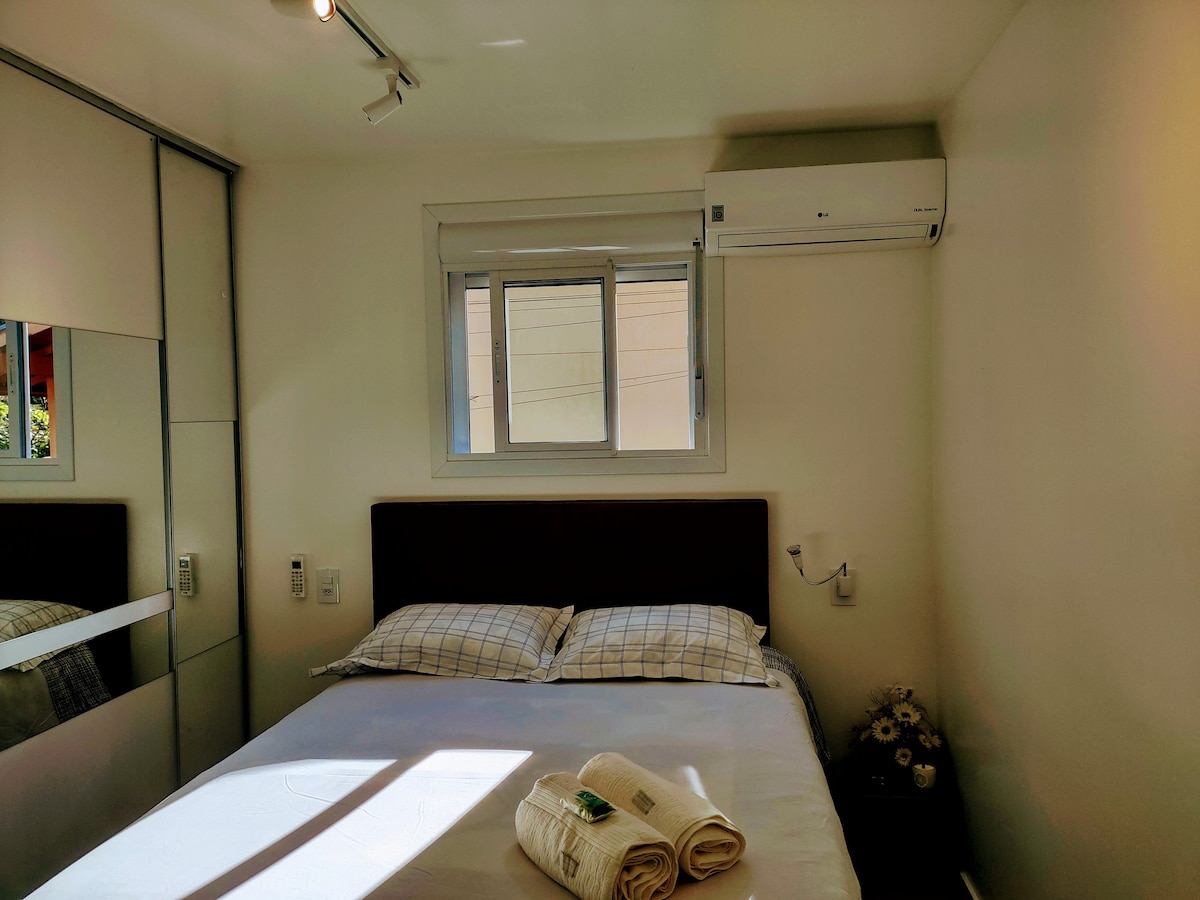 Trata-se de um espaço com dois quartos com excelente localização, bem no Centro de Canela. O local conta com mini-cozinha, ar-condicionado quente/frio, internet wi-fi, água quente encanada, estacionamento e lavanderia. Essa é uma casa particular. Este imóvel fica anexo à moradia do proprietário, porém totalmente independente. Local absolutamente tranquilo e seguro, ideal para quem busca descanso sem abrir mão de estar próximo a tudo. Estacionamento para um carro, no local, sem custo adicional.