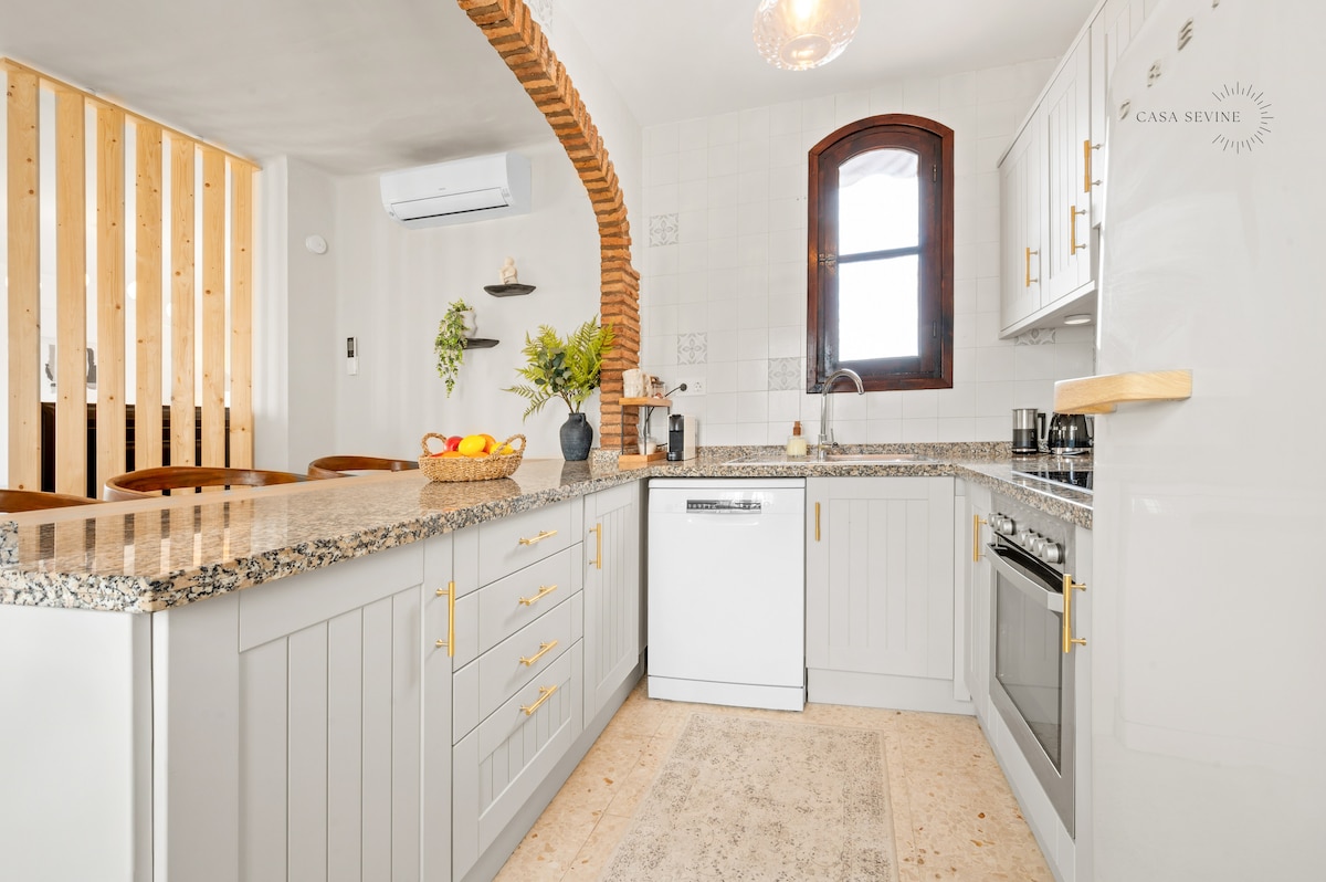 Stijlvol en gezinsvriendelijk (volledig gerenoveerd) appartement (november 2024) in een Modern Heritage stijl in San Juan de Capistrano. De woonkamer heeft glazen schuifdeuren en biedt de mogelijkheid tot een panoramisch uitzicht over Nerja. Op dit terras is een royale loungeset, tuinset en outdoor barbecue te gebruiken. Vanuit de woonkamer heb je uitzicht op zee. Alle ruimtes zijn voorzien van airco. Stadscentrum (7 min) en strand (5 min) zijn te bereiken met de bus (€ 1,00) of taxi (€ 4,00)