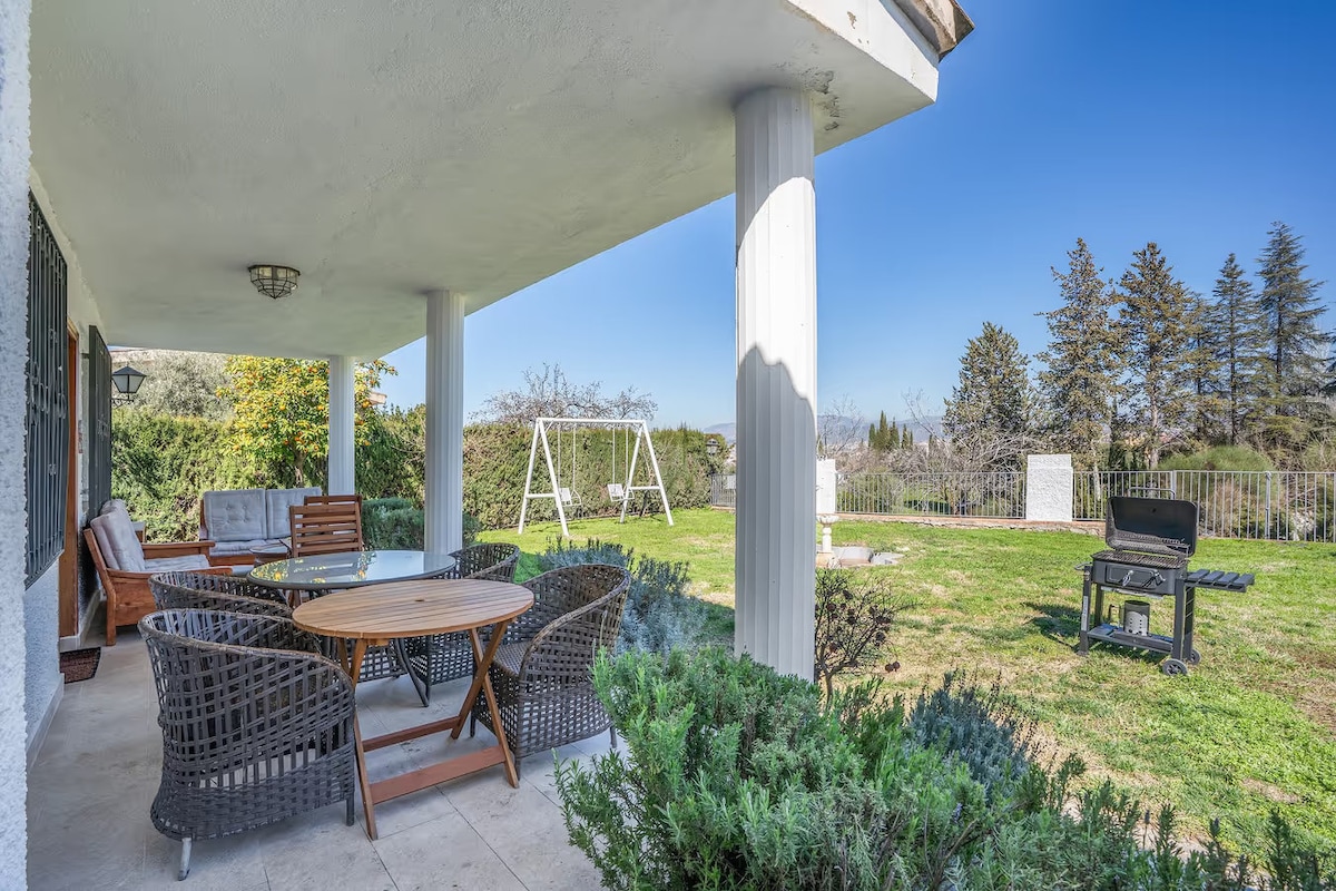 Villa Terracota has an unbeatable leisure offer in a privileged location, a few minutes from the center of Granada, Sierra Nevada and Costa Tropical. City, snow & beach! With all its rooms climate-controlled hot/cold, it offers maximum comfort and fun at any season of the year. Pool (open in May), BBQs, paella-pan, illuminated multi-sports court, terrace-gym, work desks, games room, 5 Smart TVs with 28K cable-channels and all streaming platforms, etc. All with amazing views of Sierra Nevada!
