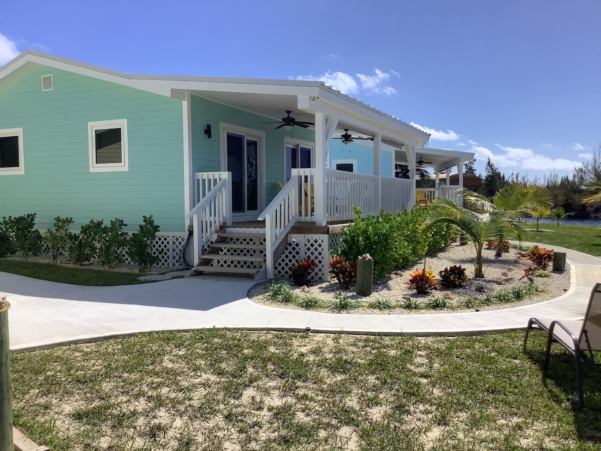 Take it easy at this unique & tranquil getaway. Boaters will enjoy docking at one of the free two 30’ floating docks with water & 110, Ocean Reef Jetty access to the ocean and the beach close by. Your comfortable green cottage has fully equipped kitchen, queen size bed and sleeper couch to accommodate up to 3 persons ,TV, WiFi and air conditioning. We are located just 5 minutes by car to restaurants in the Port Lucaya Market Place & grocery shopping. Come & enjoy that special time right here.