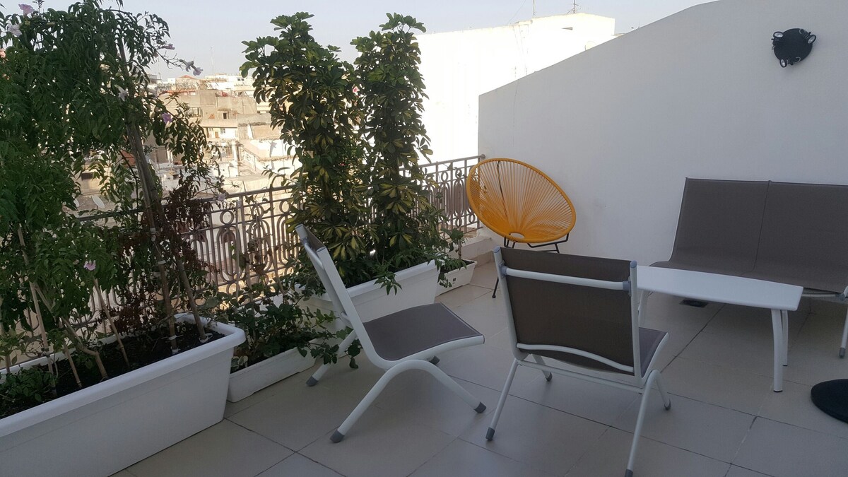 Дуже сучасний, вишуканий і дуже сонячний лофт-студія цілий день . Має три тераси, включаючи 14-метрову терасу, вітальню, повністю обладнану американську кухню, туалет, ванну кімнату нагорі та одну спальню з видом на велику терасу, офісну зону з доступом до Інтернету. Близько до всіх зручностей (ресторанів, кафе, торгового центру, пабу, супермаркету тощо). Прямо в центрі Касабланки. 3 хвилини ходьби до Твін-центру.