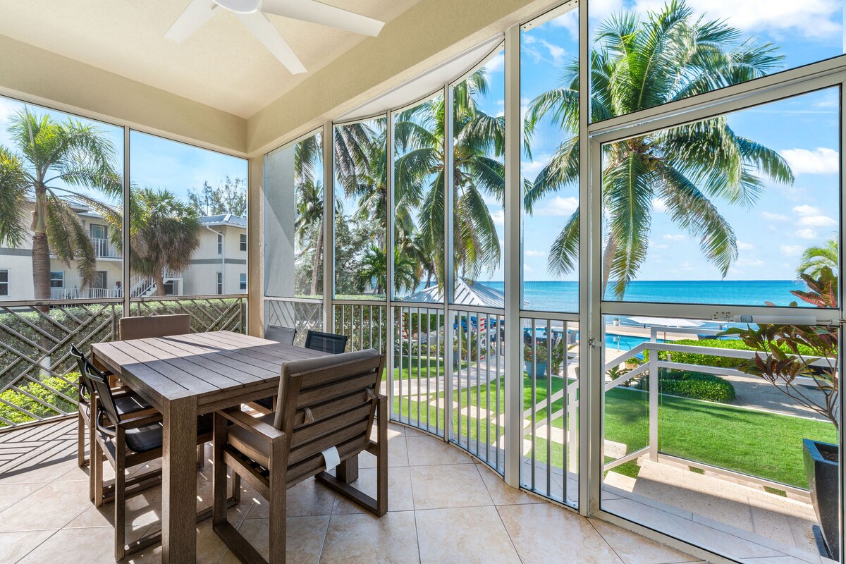 This beautiful 2-bedroom, 2 bath condo provides 1,350 square feet of beachfront living space, including a screened patio with walk-out access to the beach and pool deck. Traveling families and seniors will love the walk-out convenience exclusive to the ground-floor units. Patios come furnished with an outdoor dining table or a small lounge area. It’s the perfect spot to start your morning with a cup of coffee or wind down the day with a sunset happy hour. Inside, the interiors feature elevated ceilings, cool tiled floors, and modern fixtures. Central air conditioning, complimentary high-speed wifi, and satellite television programming will keep you cool and connected throughout your stay. The living area comes furnished with plush sofa seating, plus an entertainment center with high-definition television, Blu-Ray player, and home audio system. Enjoy all the comforts of home with oceanfront views throughout the living area. The home’s two-bedroom suites sleep 4 guests comfortably. Each bedroom is equipped with an en-suite bath and a television. Sleeping Arrangements (Sleeps 4 guests total) Primary Suite - king bed, island views, television, guest safe, ensuite with shower and bath. Guest Suite - king bed, television, ensuite with shower and bath. A fully equipped kitchen with modern appliances includes everything you need to prepare a home-cooked meal. Cookware, flatware, stemware, and cutlery are all provided. Both the patio dining table and the kitchen breakfast bar seat four guests. Daily housekeeping is included throughout your stay (Except Sundays and Christmas Day). All linens, plus bath and beach towels, Toiletries, along with Paper Towels, Bathroom Tissue, and dish detergent are provided. Each condo is also equipped with a full-size washer and dryer. Laundry service is available by contacting the front desk. Located within walking distance to restaurants, nightlife, shops, and watersports, the South Bay Beach Club is a wonderful resort for guests looking for a Seven Mile Beach vacation. For concierge services, feel free to email us at — we're here to help make your vacation as smooth and enjoyable as possible. Entire_home