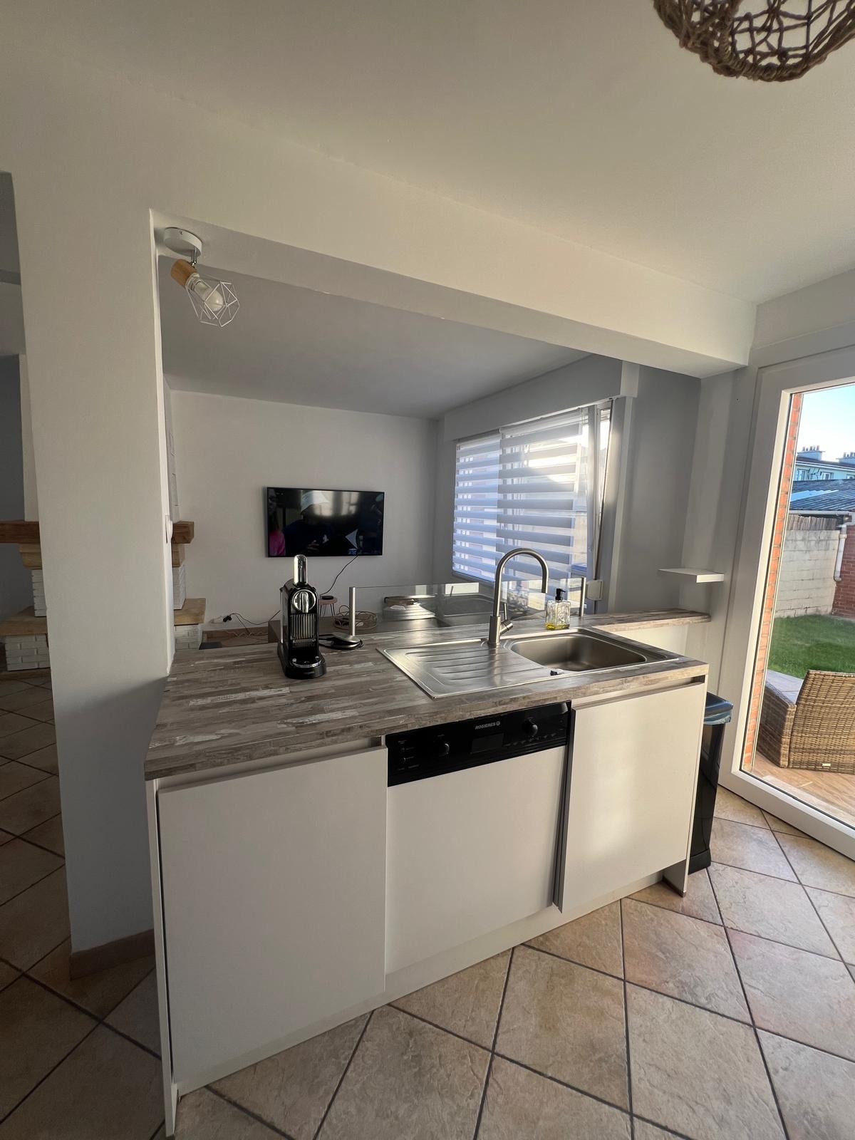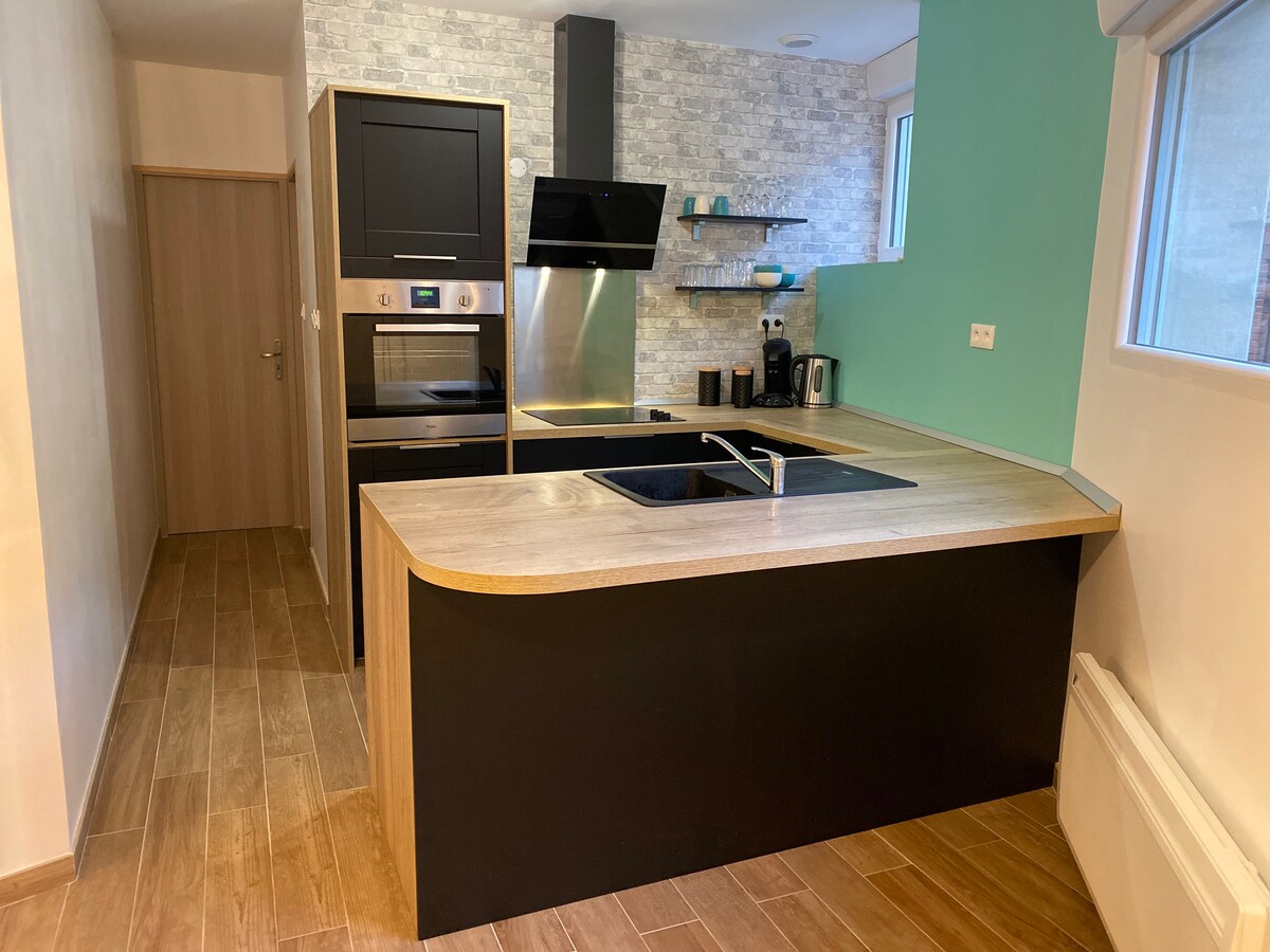 Чарівний заміський будиночок площею 55 кв. м на затишній вулиці Цей будинок розташований у Гранд-Форт-Філіппі, між Дюнкерком і Кале, і пропонує спокійне та сучасне середовище проживання поблизу всіх зручностей: пекарень, Макдональдса, Super U, АЗС, кінотеатру, боулінг-ресторанів та магазинів. Повністю обладнана нова кухня Тепла сучасна вітальня/їдальня Функціональна спальня Сучасна душова кімната Це помешкання поєднує в собі комфорт, сучасність і близькість до послуг