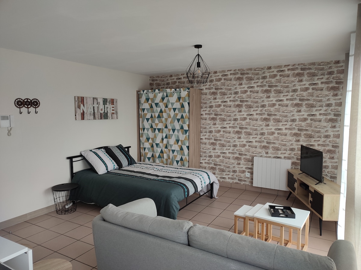 Надзвичайно яскрава квартира-дуплекс, розташована в центрі Petit-Fort-Philippe, на площі Кальметте, недалеко від всіх місцевих магазинів пішки. Повністю відремонтовано. Ідеально підходить для пари або відвідувачів професіоналів. 2 хвилини ходьби від пляжу та 2 хвилини на автомобілі від CNPE. Безкоштовна стоянка на вулиці Плата за прибирання також передбачає надання білизни та рушників для вашого перебування. Перебування з домашніми тваринами дозволяється завдяки чистоті та захисту дивану.