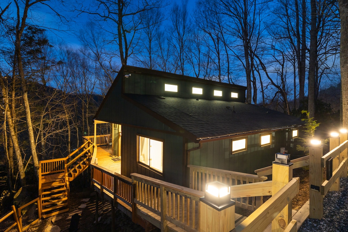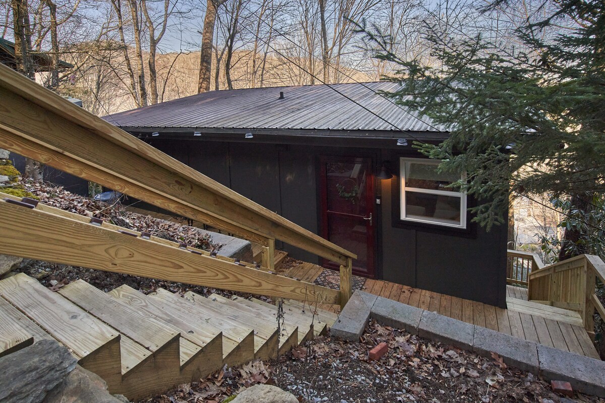 Проїжджайте по критому мосту через річку Ватауга (де можна поплавати), щоб знайти цей щойно відремонтований гірський будинок. Це 2 спальні, 2 ванні кімнати + двоповерховий лофт (всього 6 місць). Зручно розташований між Буном і Banner Elk. Коли ви піднімаєтеся по під 'їзній дорозі, подвійні палуби одразу привертають ваше увагу. Насолоджуйтеся приголомшливим видом на гори та ліс з обох критих палуб з багатьма зручними сидіннями, газовим грилем та гідромасажною ванною. На землі вас чекають стільці Adirondack і вогнищева яма.