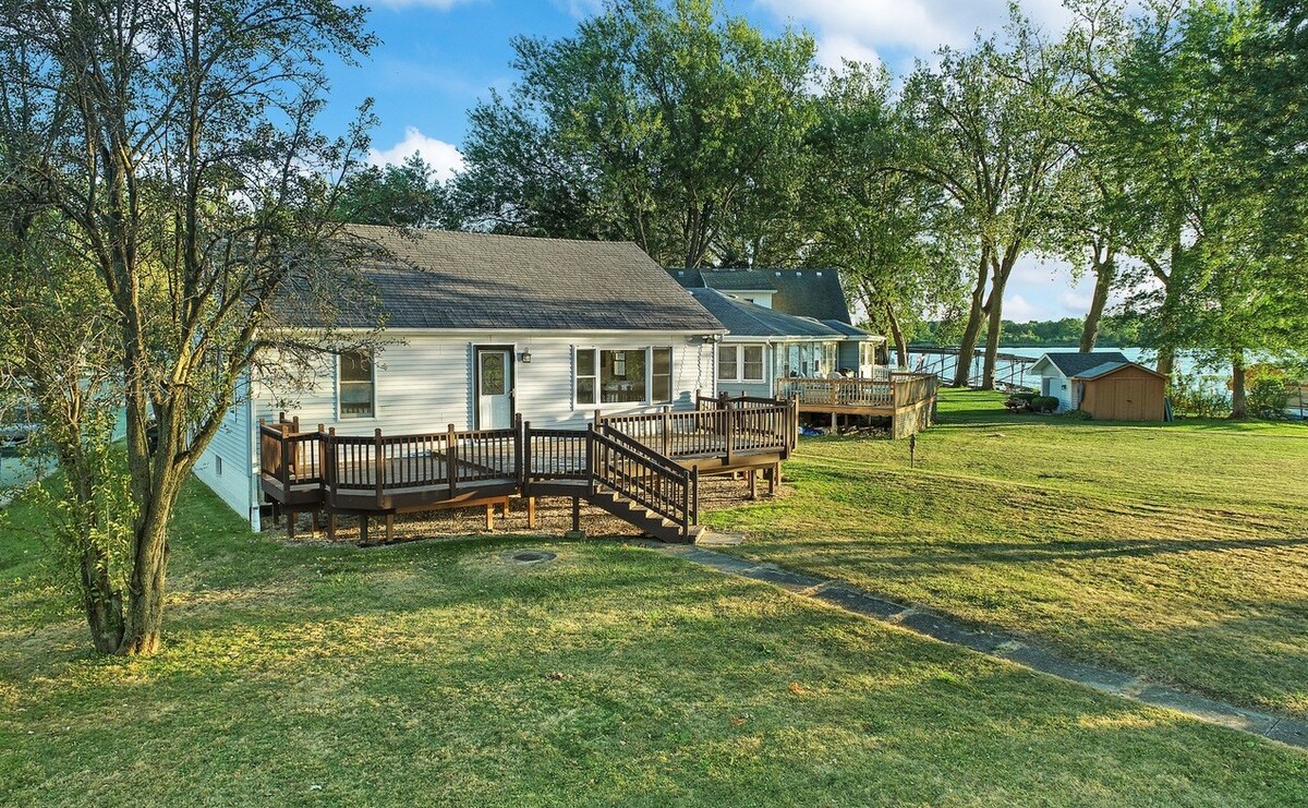 Вітаємо всіх човничиків Chain O'Lakes і шукачів на набережній у курортному стилі, який може запропонувати Фокс-Лейк! Розташовані безпосередньо на озері Фокс, насолоджуйтеся сніданком на красивій терасі, кавою або вином на балконі, а потім проведіть день на воді. Цей приголомшливий, ретельно доглянутий будинок на березі озера площею 1850 квадратних футів був повністю відремонтований у 2020 році. Вечеряйте на терасі з видом на озеро та приготуйте свої сомори у вогнищі, перебуваючи на краю затоки Мінеола.