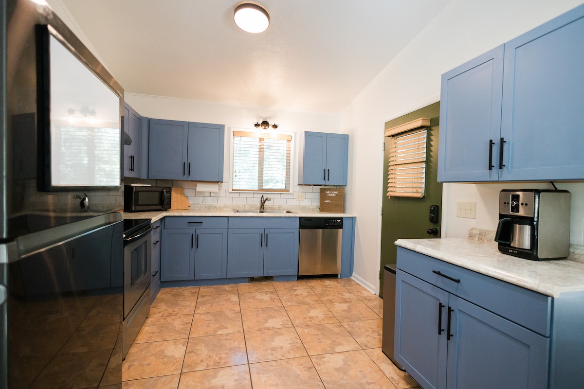 Утікайте в NWA в цьому повністю обладнаному помешканні з 4BR/2BA, де всі розкоші готелю розташовані в укритті вашого власного помешкання! Вам сподобається працювати на своєму велосипеді/дивитися телевізор у гаражі МТБ, а тропа Little Sugar поза вашим заднім двором може злетіти в будь-який момент. Вночі відвідайте гастрономічні/мистецькі заклади Бентонвіля з центром Бентонвіля, музеєм Crystal Bridges і The Momentary всього в декількох хвилинах ходьби. Або відпочиньте ввечері на приватній задній палубі, у патіо або у вогняній ямі. Вибір за вами!