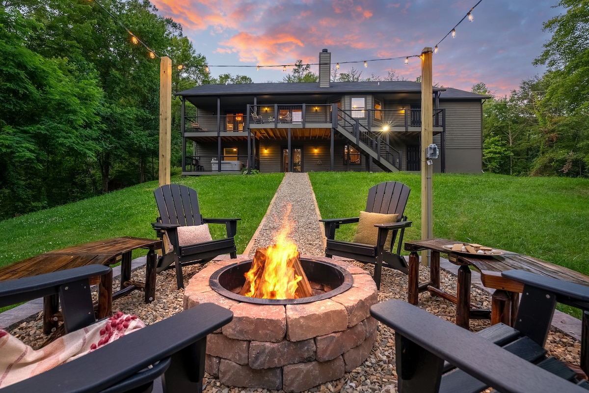 Розташований на приватній вершині пагорба площею 36 акрів (найвища за межами парку!), Belltop - ідеальний відпочинок. Насолоджуйтеся нашим ремонтом у 2024 році! Ви знайшли помешкання StayBham, творці натхненних ретритів. Пар в просторій парній. Насолоджуйтеся йогою на світанку в лофті. Відпочиньте в гідромасажній ванні з видом на долину. Грайте в вінтажні відеоігри. Слухайте запис або грайте на фортепіано. Спостерігайте за заходом сонця, сидячи біля вогнища. За хвилини від входу в долину Вірс до Смокі-Маунтинс.