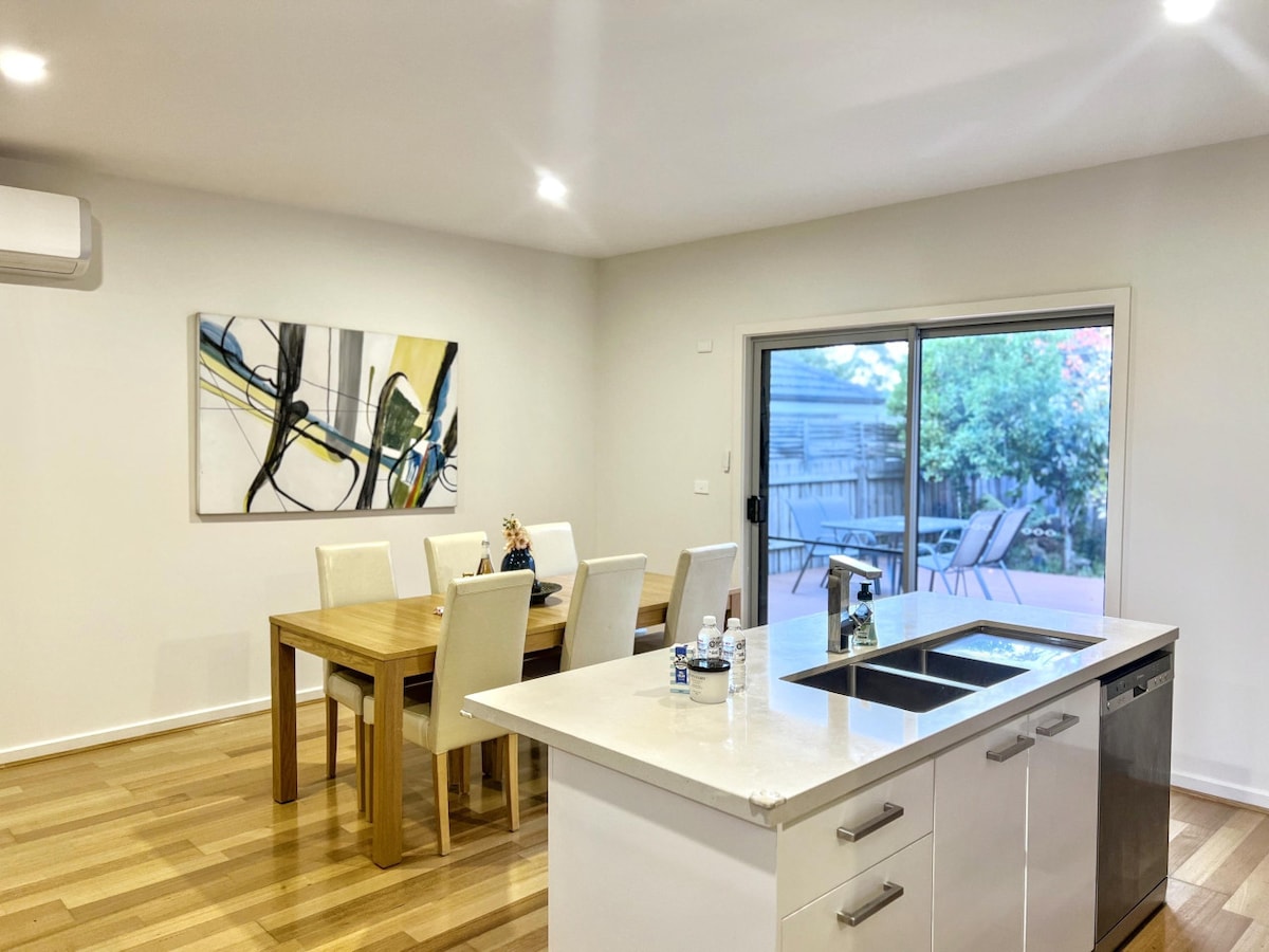 Relax with the whole family at this peaceful home away from home. Located right across from a lovely park with a brand-new playground, outdoor workout equipment, and scenic walking paths. Just a short walk to a shopping area, train station, local hotel, and loads of fast food options, no need to cook if you don’t want to! Perfectly situated to explore the Dandenongs and the Mornington Peninsula, with Carrum Beach only 12 km away, just a 15-minute drive.