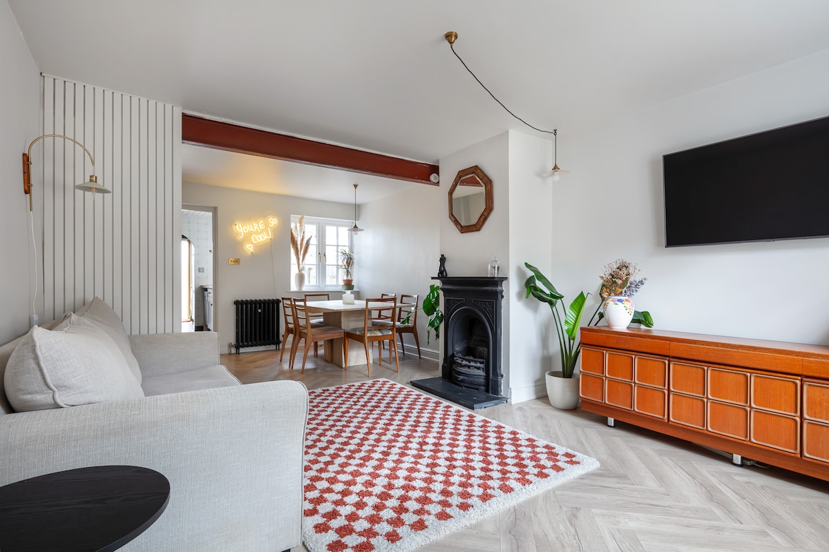Чарівний котедж на березі Темзи з приватним садом. Насолодіться стильним відпочинком за 15 хвилин від аеропорту Гітроу, поблизу парку Торп, із легким сніданком у вартість. Популярні пам’ятки – «Леголенд», Віндзор, Гемптон-Корт, Вентворт і Чессінгтон – знаходяться поруч. У помешканні є 2 спальні (1 з двоспальним ліжком, 1 з двоярусним ліжком), простора вітальня відкритого планування з диваном-ліжком та повністю обладнана кухня. Пообідайте на терасі або насолоджуйтеся гойдалкою, спостерігаючи, як човни пропливають повз по річці. Примітка: немає прямого виходу до річки з саду.
