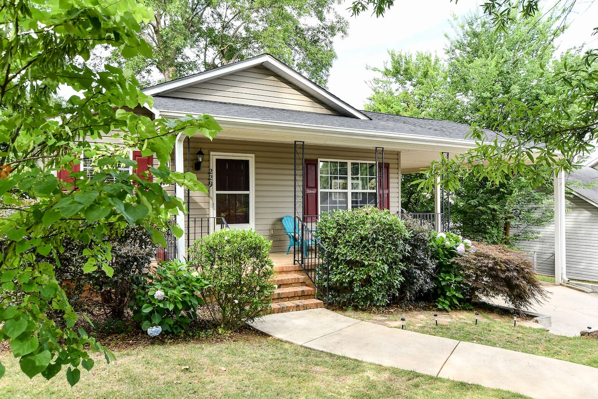Located in the heart of the Village of West GVL Arts district, just 1 mile from Reedy Falls Park in DT Greenville! ✪ 1500 ft² - 2 bedroom/2 bath private ranch house (Child Friendly) ✱5 min Walk to Village of West GVL with Food, Coffee, & Art ✱Complementary Online & Onsite Guidebook ✱Artisan Table Swing in Backyard & Chairs on the Porch ✱Fully Stocked Kitchen with Premium Coffee, Olive Oil, & Spices ✱Work Space? Dining Room has plenty of usable space ✱Instant check-in w/ keypad access