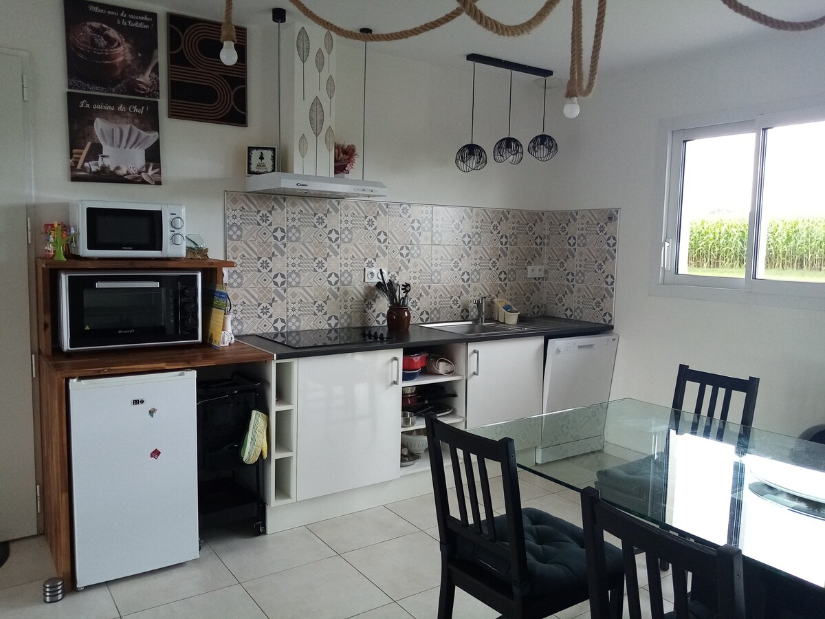 Ідеальне розташоване в сільській місцевості в районі Ба-Мауко в регіоні Ланд, менше ніж в 5 хвилинах від Сен-Север і в 15 хвилинах від Мон-де-Марсан. Приємна студія площею 25 м² повністю мебльована зі смаком, суміжна з нашим помешканням, з окремим та окремим входом, що складається з: - Обладнана кухня (холодильник, мікрохвильова піч, кавоварка, варильна поверхня, посуд) - Спальня з двоспальним ліжком 160x200 - Ванна кімната - Окремий туалет - смарт-телевізор і WI-FI; - Невелика приватна прибудинкова територія. Надається постільна білизна.