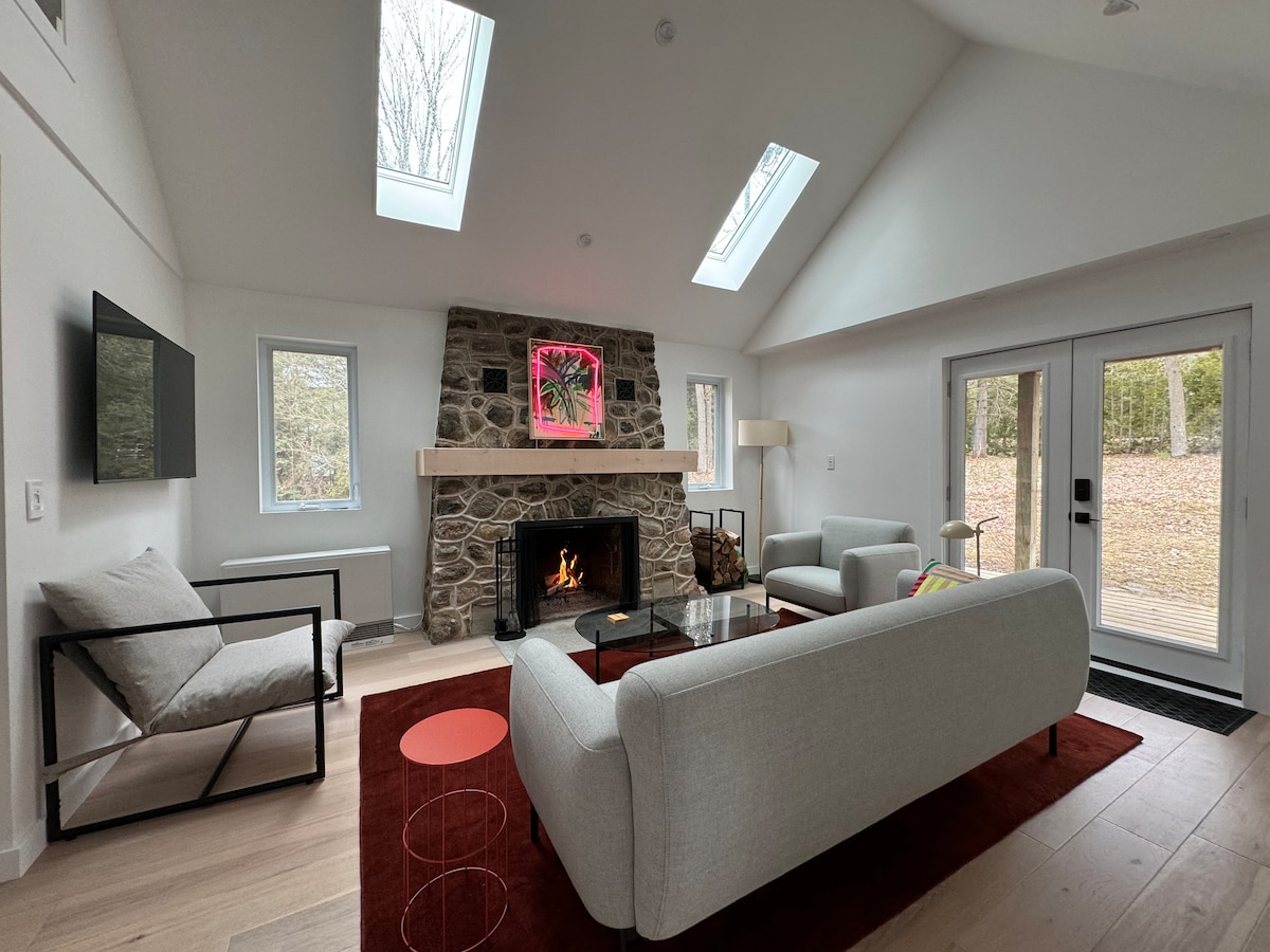 БУДЬ ЛАСКА, ПРОЧИТАЙТЕ! Mt. St. Louis & Horseshoe Valley біля порога! Це яскравий, великий і приватний ГОСТЬОВИЙ АПАРТАМЕНТ (квартира на цокольному поверсі). Гідромасажна ванна, патіо, вогнищева яма та затишна доріжка в лісі, щоб насолодитися природою. Кухня обладнана індукційною варильною панеллю та усім необхідним, навіть відкривачем для пляшок вина:) Відкрита концептуальна вітальня/кухня/їдальня з телевізором і Roku. Спальня - це твір мистецтва: темний, таємничий і романтичний! Спеціальне ліжко Queen Size, зроблене з вивітреної деревини, врятованої від нашої власності.