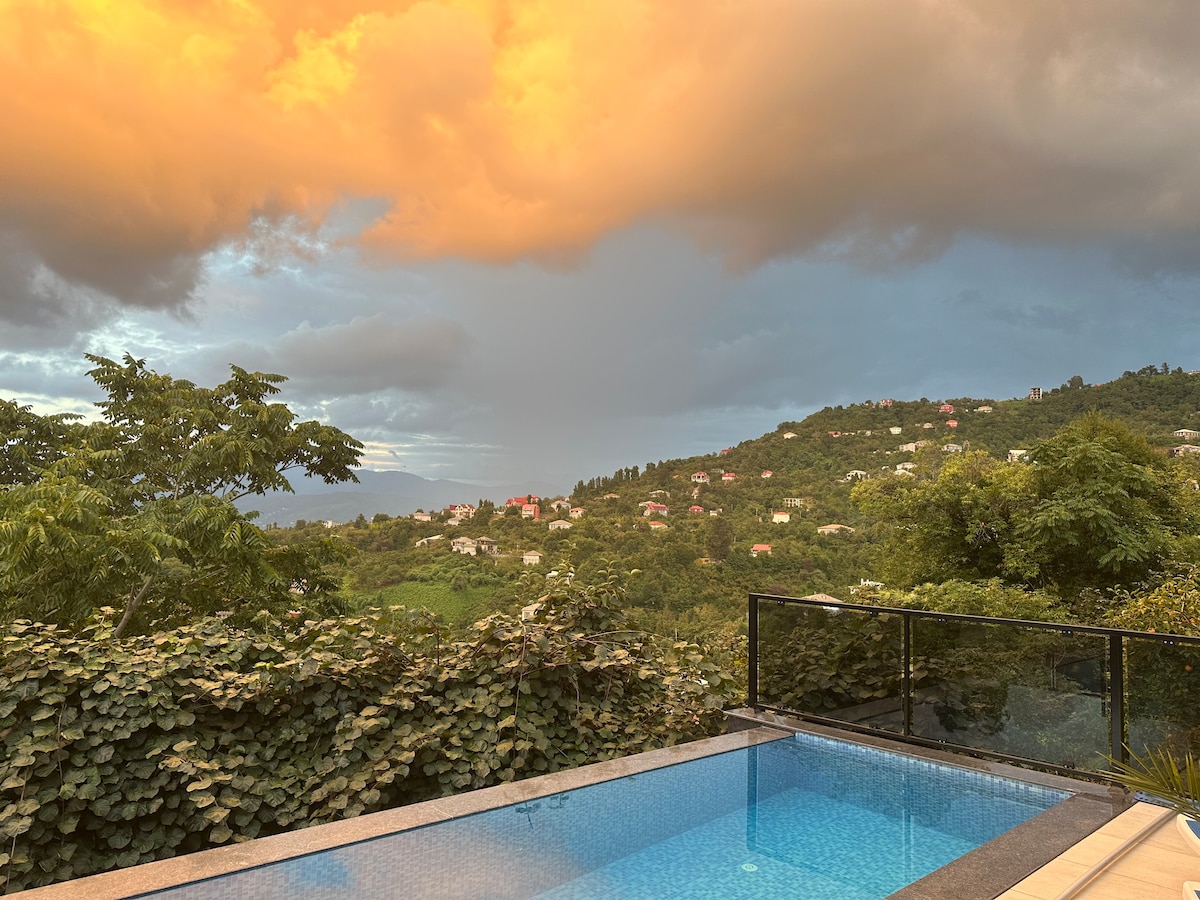 🌴🌴🌴🏊🏊🏊👙👙 Басейн з підігрівом, і ми гарантуємо 26–30 градусів навесні та восени! Басейн не працює в грудні, січні та лютому. Будинок із комфортним розміщенням для 8 осіб. Будинок розташований в 15 хвилинах їзди від центру Батумі та має прекрасний вид на море. Усередині будинку ви знайдете: добре ✅обладнану кухню, ✅три спальні та три ванні кімнати. ✅Телевізор, пральна машина, кондиціонер у кожній спальні та система опалення.