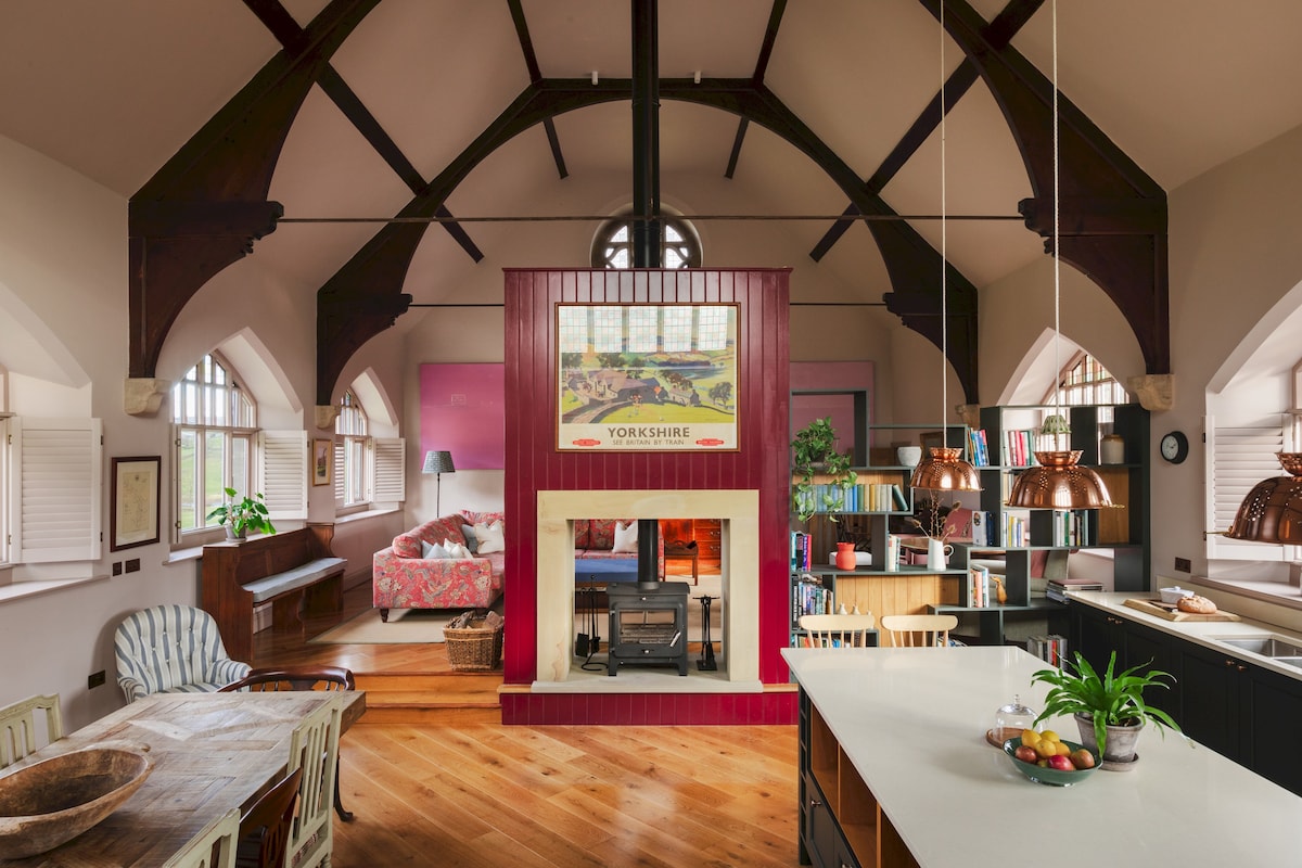 Унікальна та романтична студія з модриною з приголомшливим видом на Ніддердейл, всього в милі від Брімхем-Рокс. Колись ювелірний простір Еліс Кларк тепер пропонує спокійний, стильний відпочинок із підвісною конфоркою та паркуванням на території. Розташовані над нашим іншим помешканням на Airbnb, Cosy Cottage, обидва помешкання працюють на відновлюваних джерелах енергії. Ми раді поділитися цим особливим помешканням з тими, хто шукає спокійного відпочинку в центрі Йоркшира.