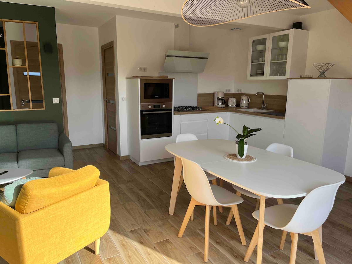 * У зоні безкоштовного паркування * Приїжджайте і зупиніться в нашому прекрасному будинку площею 55 кв. м, розташованому в центрі міста Берк-сюр-Мер, за 2 км від пляжів Опалового узбережжя. Поруч із усіма зручностями. Надається побутова постільна білизна та рушники. Парасолька також у вашому розпорядженні. * Про наших чотирилапих друзів * Ми приймаємо їх за додаткові 20 євро. Тому обов’язково збережіть їх під час бронювання. Заряджання електромобіля неможливе.