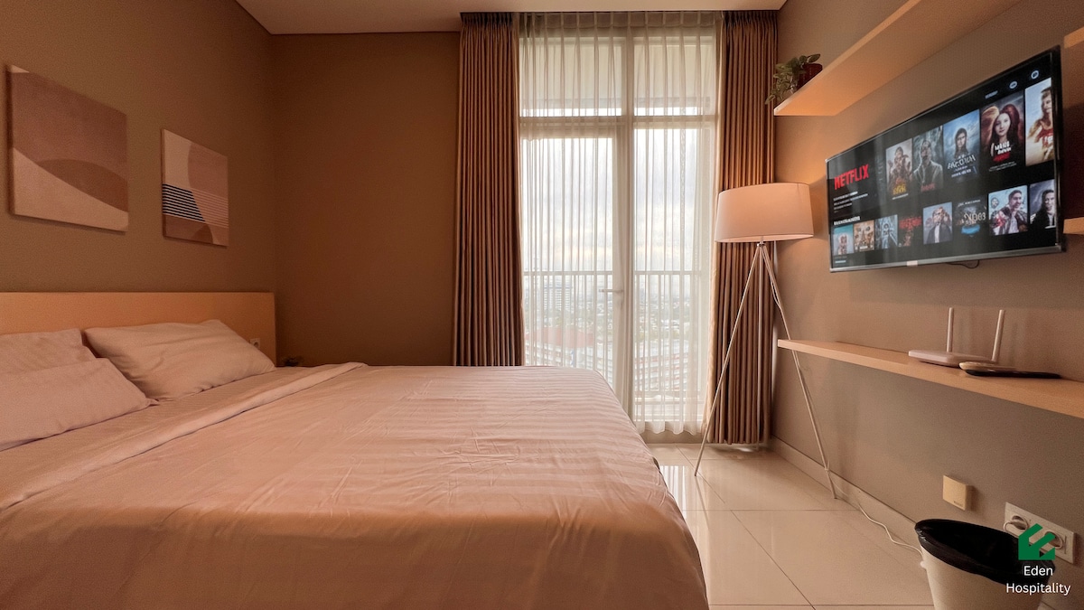 Насолоджуйтеся стильними враженнями в цьому помешканні, розташованому в центрі міста. Квартира Green Sedayu об 'єднана з торговим центром Green Sedayu Mall з багатьма зручностями всередині. Він також знаходиться неподалік від аеропорту. Зайдіть у свій затишний відпочинок і вас зустріне чарівний приватний балкон і велике вікно з приголомшливим видом на місто. Розслабтеся й насолоджуйтеся перебуванням! (Басейн і тренажерний зал доступні для оренди мінімум на 6 місяців🙏)