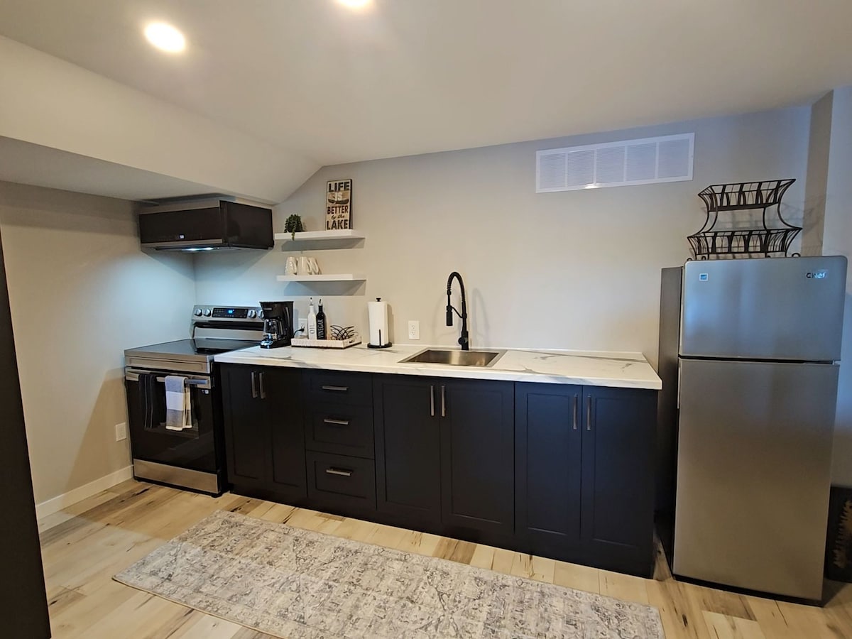 Відпочиньте й розслабтеся в цьому спокійному, стильному гостьовому люксі на березі озера з 2 спальнями на першому поверсі неподалік від парку Алгонкін. Чудовий вид на озеро, розташований в декількох кроках від нашого приватного піщаного пляжу на озері Лікс. У цьому гостьовому люксі лише для дорослих є зручні ліжка, повністю обладнана кухня, велика ванна кімната та вітальня. Красива прибудинкова територія з пишними садами, місцем для багаття, мускокою та шезлонгами, барбекю та обіднім набором. До послуг гостей каное, байдарки та дошки для веслування. Красиво і тихо цілий рік.