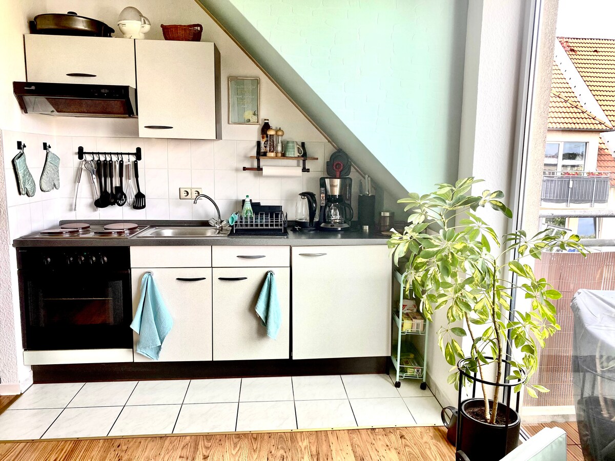 Cottbus Apartments: Your City Hideaway 🦞 Enjoy your stay above the rooftops! Located right in the center, yet very quiet. ⚠️ Note: 4th floor without elevator (free workout!) – but bright, private & with a view. Your Highlights: ☀️ Sunny balcony & Smart TV 🛌 Quiet bedroom (blackout blinds) 🚀 High-Speed WiFi included 📍 Top Location: Walk to restaurants & shops Feel at home with Cottbus Apartments!
