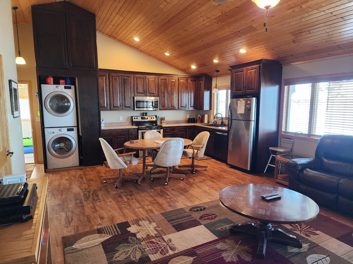 Ласкаво просимо до Aberdeen - The Hub City - Зручне розташування з чудовою парковкою, швидким доступом до пішохідної/велосипедної доріжки та парком прямо через дорогу! На відстані прогулянки від лікарні Стенфорд, торгового центру, заправки, ресторанів, виробничого комплексу 3M та центру подій Дакота, бейсбольного поля Фоссум, коледжу презентацій та тренажерного залу в межах 1 милі. Чиста, затишна, повністю облаштована квартира у вашому розпорядженні. На території є пральня. Знижки за тиждень/місяць! 2 приватні спальні! Домашні тварини/мисливські собаки дозволені!