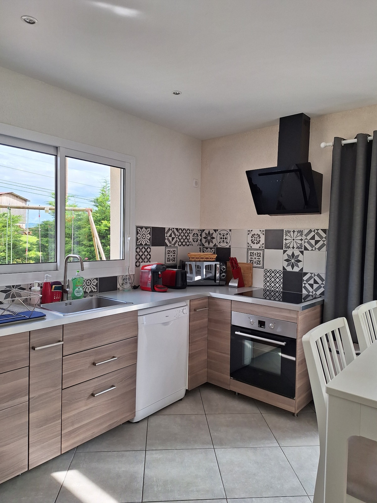 Новий окремий будинок на першому поверсі в селі в центрі Юри біля Поліньї, столиці округу, для відпочинку з сім’єю або друзями. У тому числі: 4 спальні (3 спальні з двоспальними ліжками, 1 спальня з 2 односпальними ліжками), обладнана кухня (кавоварка з фільтром), вітальня, їдальня, ванна кімната з ванною (дитячі сидіння та сидіння), італійський душ, окремий туалет, гараж із пральнею, пральна машина + сушильна машина), приватний двір з парковкою та велика тераса з перголою.