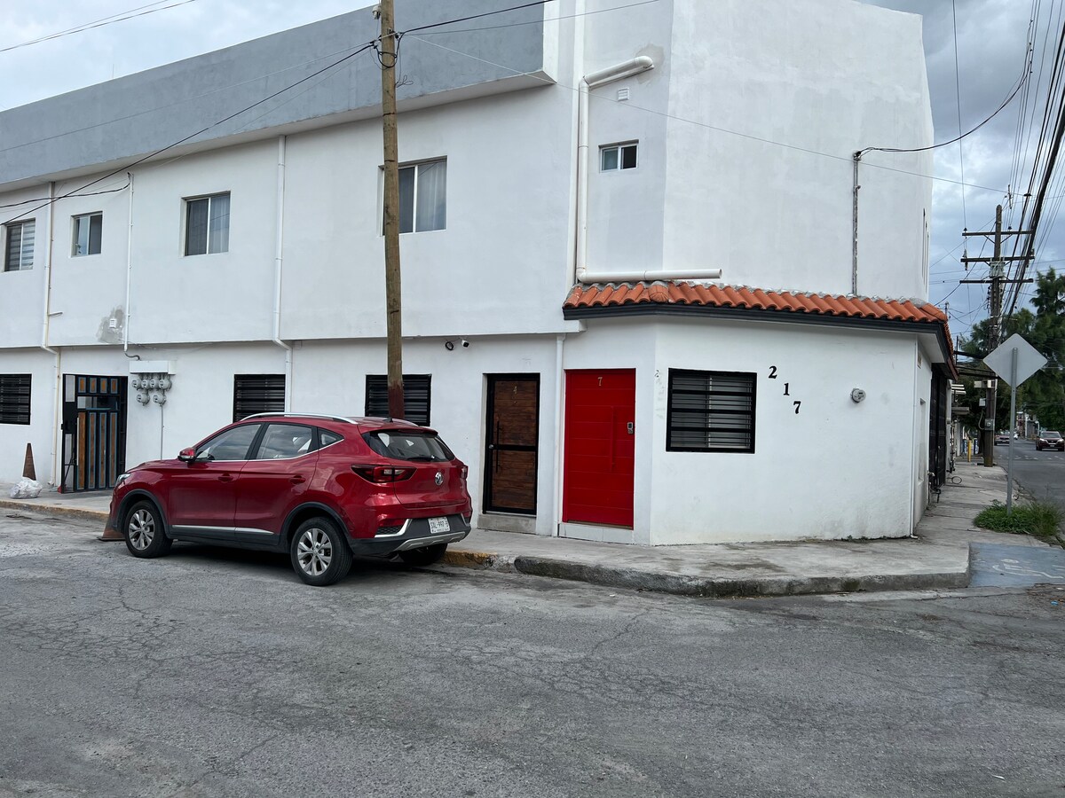 Ваша сім 'я буде ближче до всього, якщо ви зупинитеся в цьому помешканні в центрі міста. Квартира для 4 осіб на другому поверсі. Ми знаходимося недалеко від найкращих центрів відпочинку в місті. Ми знаходимося всього в 9 хвилинах від арени Монтеррей. 9 хвилин від парку Фундідора. 15 хвилин від аудиторії Banorte. 10 хвилин від стадіону BBVA. 5 кварталів від станції метро Eloy Cavazos.