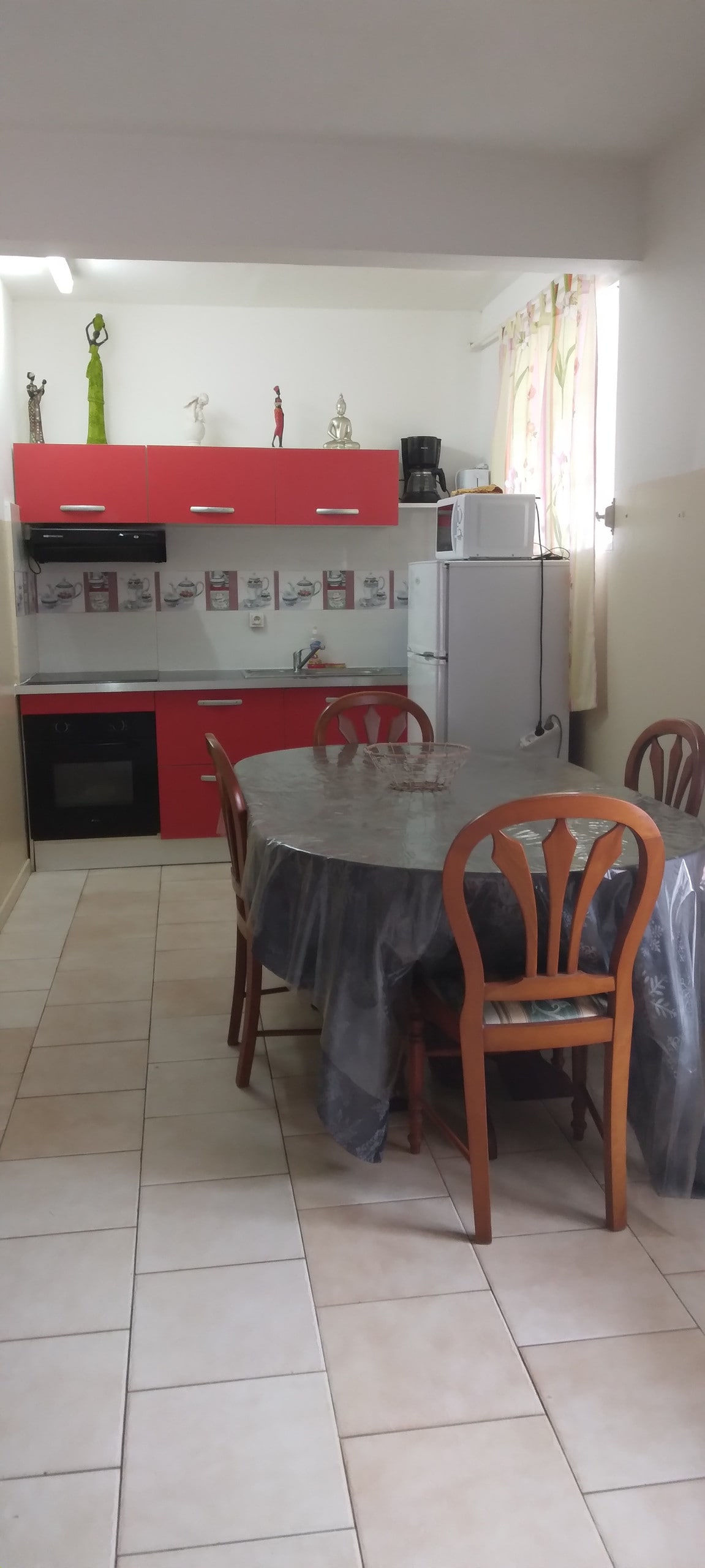 T2 paisible à la campagne. Proche des commodités. À 7km de l'aéroport. 1 salon avec canapé convertible. 1 cuisine équipée. 1 coin repas. 1 chambre climatisée avec placard. 1 salle d'eau. 1 espace détente tranquille qui permettra de prendre le petit-déjeuner ou encore de faire un barbecue. Possibilité d'accueillir 2 personnes supplémentaires: 7 euros par personne/ par nuit