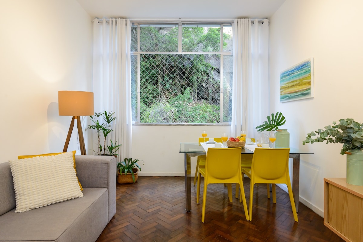Насолоджуйтеся приголомшливим та унікальним видом на океан і гору в оновленій в центрі, відремонтованій квартирі з 2 спальнями в Леме, Копакабана, ідеально підходить для сімей та пар. Квартира затишна і має все необхідне, щоб ви почувалися як удома. Дуже простора та стильно оформлена вітальня та повністю обладнана квартира. У одній спальні є ліжко queen-size, у другій спальні - 2 односпальні ліжка, а також ще 2 матраци/футони, які можна розмістити у вітальні, якщо це необхідно.