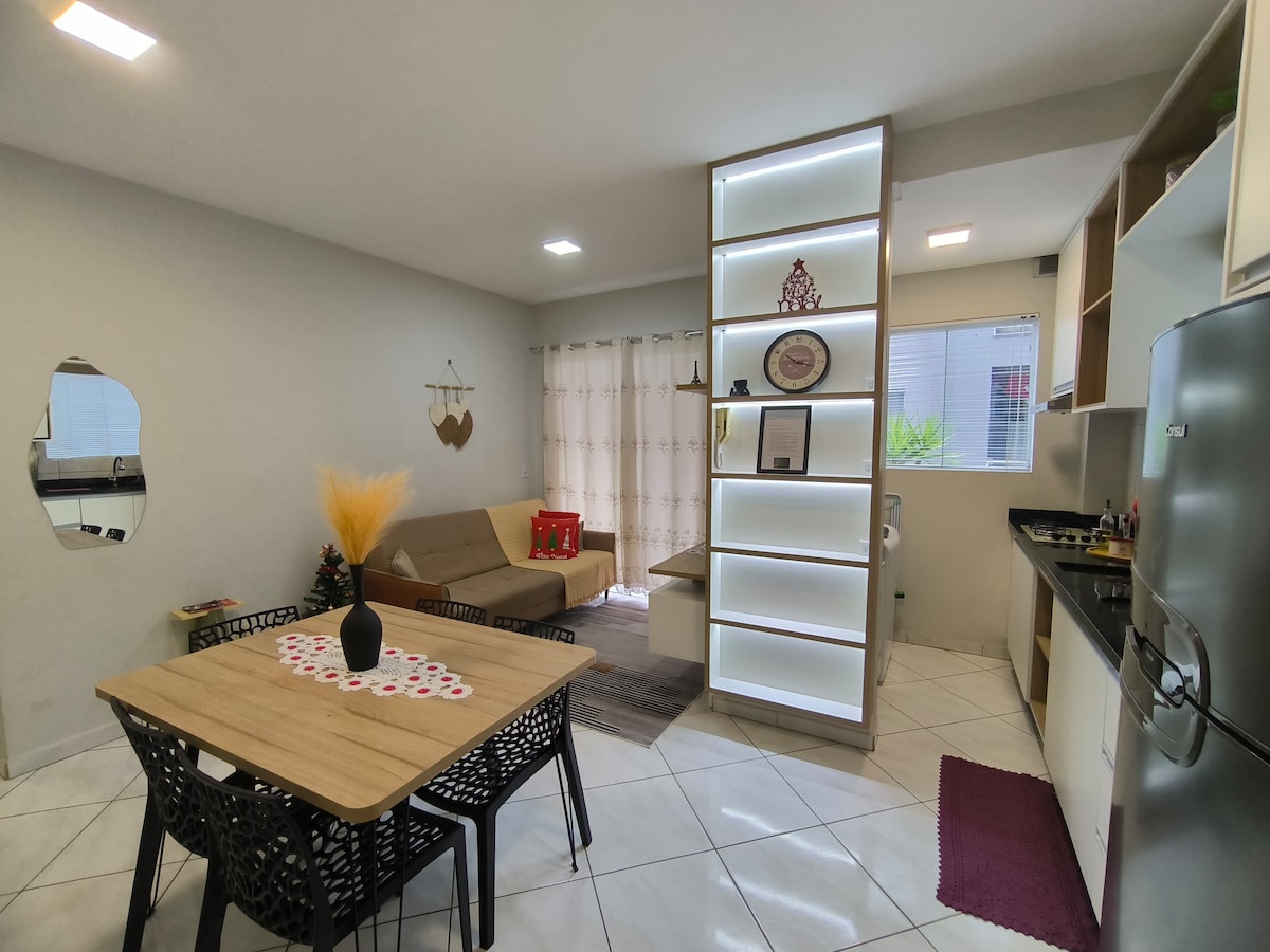 Забудьте про свої турботи в цьому чистому, затишному помешканні для сімейного відпочинку. Розташоване в кондомініумі з 3 будинками на вершині пагорба. на автомобілі знаходиться всього в 3 хвилинах їзди від лінійного парку Via Verde, в 4 хвилинах від Weg II, в 8 хвилинах від центру, в 1 хвилині їзди від заправки та в 2 хвилинах їзди від ринку та пекарні. Харагуа-ду-Сул - прекрасне місто з кількома прогулянками на відкритому повітрі серед природи, чудово підходить для тих, хто шукає нові горизонти з тишею та спокоєм.