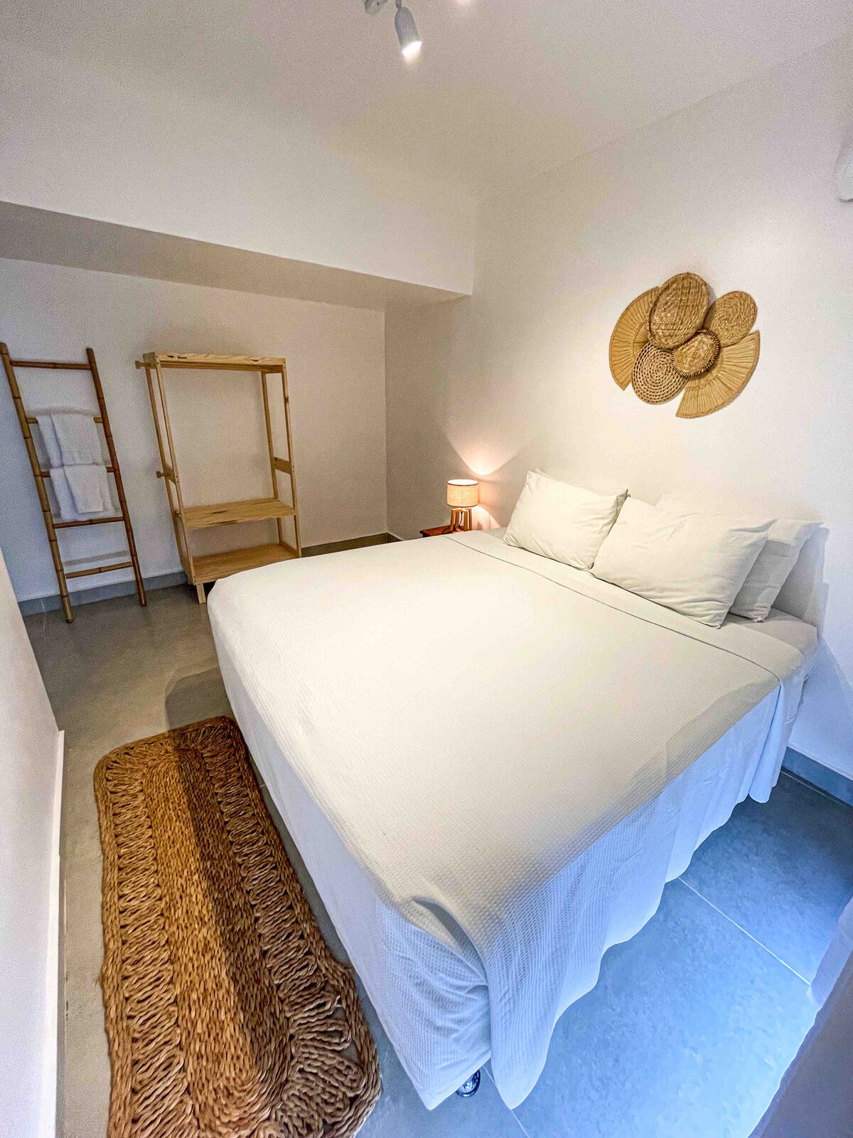 O quarto está equipado com uma cama queen-size e ar condicionado.