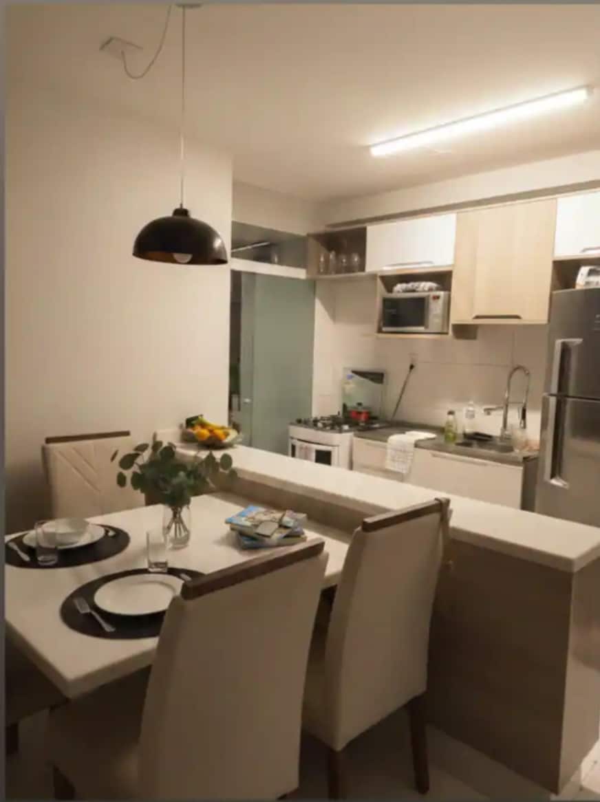 Чудова студія в Гуарулгосі! Прямо на шляху з Дутри. Розташований в центрі Гуарульхоса в 15 хвилинах їзди від аеропорту та в 25 хвилинах їзди від Сан-Паулу. У студії є повністю обладнана кухня, а також кофемашина Nespresso, блендер і фільтр. Також є домашнє офісне приміщення, тому ви можете працювати з упевненістю. У спальні розташовані шафа для одягу, ліжко queen-size і весь триссо. Нова будівля з парковкою, басейном, фітнес-центром, пральнею, конференц-залом та цілодобовим консьєржем.