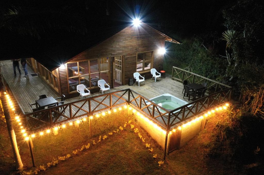 Es una hermosa cabaña en medio de un bosque nativo. Donde puedes disfrutar de la naturaleza, el bello cantar de los pájaros, y el relajante sonido de una cascada de agua corriente. También cuenta con un lago, el cual puedes apreciar desde el sendero que conduce a la cabaña. Es un espacio tranquilo, acogedor, que te permite desconectarte de lo cotidiano, de la monotonía y vivir una experiencia maravillosa.