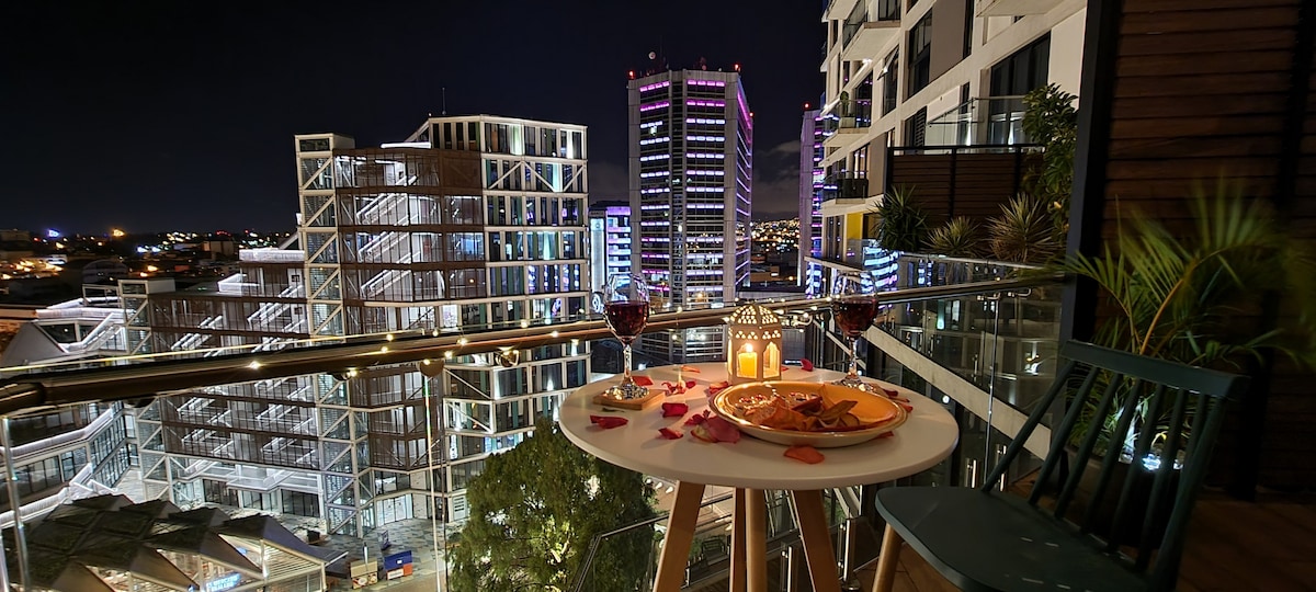 Розслабтеся в цьому затишному та стильному помешканні. Насолоджуйтеся стильними враженнями в цьому помешканні в найкращому районі міста, всього в декількох метрах від аеропорту. Наш розкішний люкс з балконом із джакузі та каміном має захоплюючий вид на місто. Це дуже хороший варіант для вас, він має сучасний стиль, домашній офіс, вам ніколи не нудьгувати під час роботи, знайте це!!