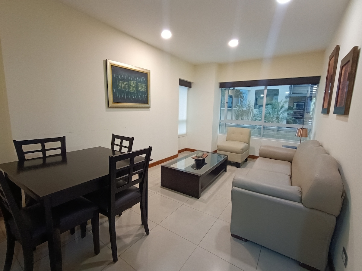 Розкішні апартаменти розташовані на другому поверсі (сходи піднімаються). Цитадель приватна і має цілодобового опікуна. Поруч із C.C. San Marino. Вона має вітальню, кухню, спальню, окрему ванну кімнату, смарт-телевізор із Netflix, Wi-Fi, холодильник, парковку. Доступ до забудови контролюється, і ми робимо все можливе, щоб прискорити процес для наших гостей; однак це може зайняти додаткові кілька хвилин.