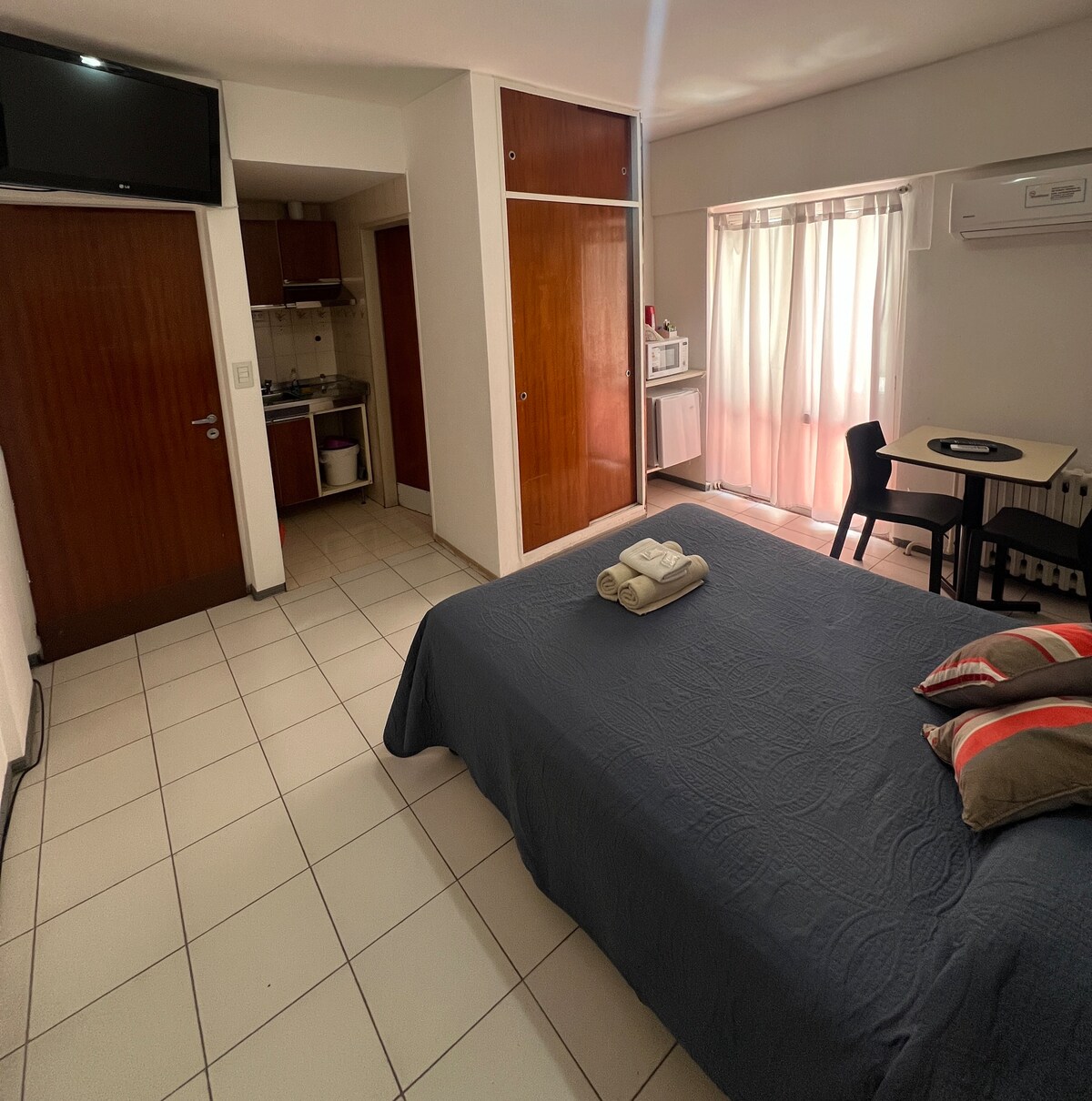 Окрема кімната з ванною кімнатою, включений сніданок, кондиціонер та Wi-Fi. Розташований у центрі Мендоси, за 200 м від терміналу, перед великим парком, ідеально підходить для прогулянок або фізичних навантажень. Поруч із рестораном, мінімаркетом та гастрономічною пішохідною зоною. Тепла увага та персоналізовані екскурсії на виноробні, в гори тощо. Комфорт і гарний настрій гарантовані!