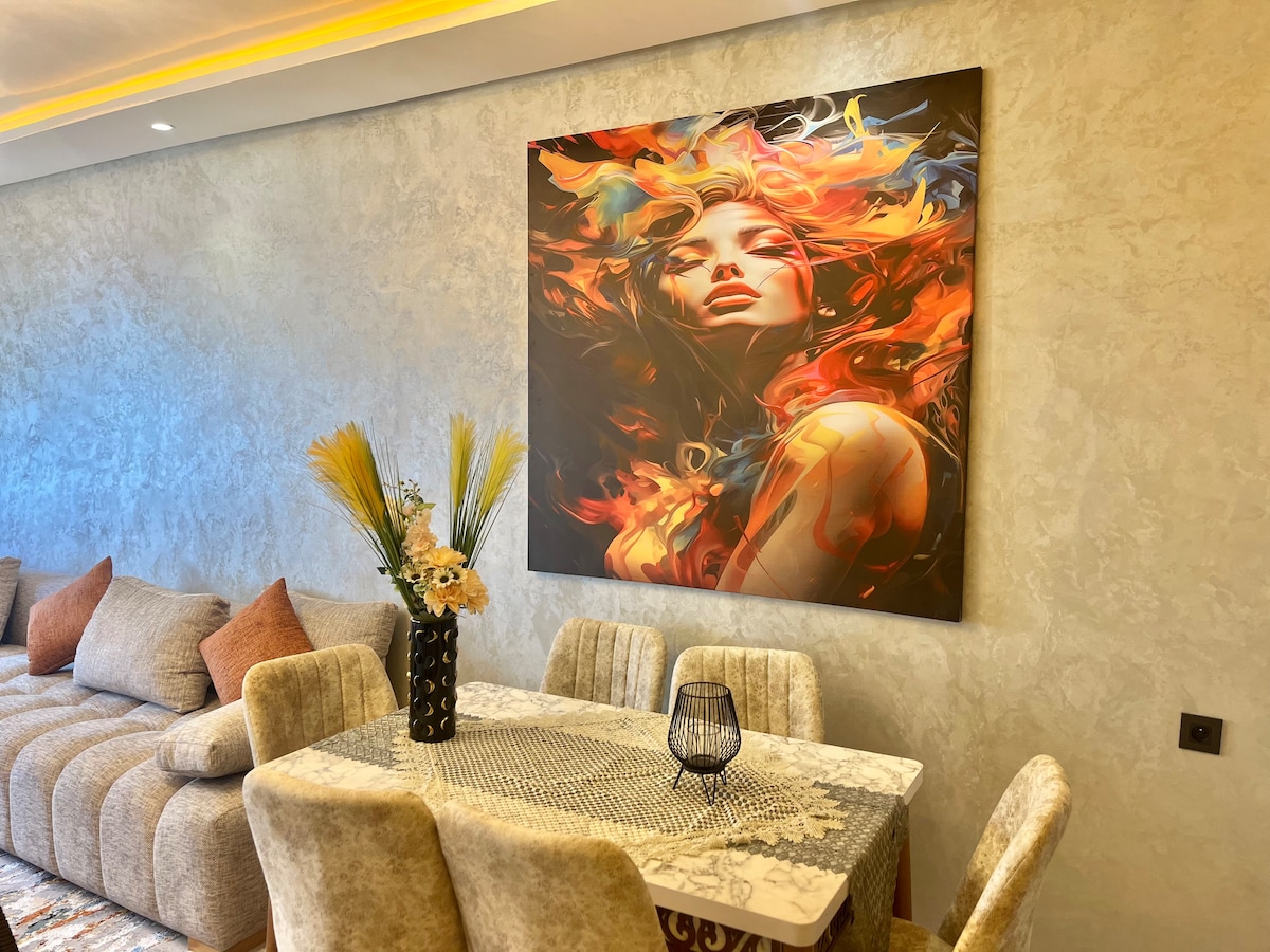 Thinking of a weekend treat or relaxing vacation in the city of warmth Agadir? then WLC has a lot to offer in and out, 70m Fully furnished brand new apartment with a beautiful balcony welcoming sunshine for the entire day, 1bedroom with Smart Tv, 1 living room with large Smart TV & speaker also includes 3 sofa beds foe sleep as well, 1 Bathroom, 1 Toilette, large Salon/guest room, fully equipped kitchen. Very quite secured, with cameras and guards that controls at the entry, Free parking lot.