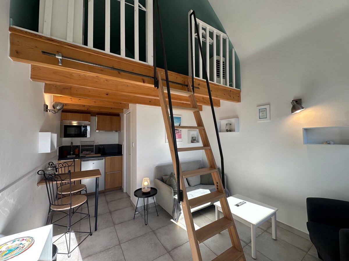 Незалежна студія недалеко від центру міста ЛА-БОЛЬ з терасою та садом для 2 осіб на території західного вітру. Район має перевагу Також близько до залізничного вокзалу, ринку та, звичайно, пляжу. Чудово підходить для омолодження.