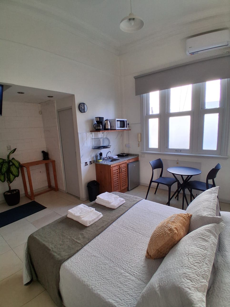 TU LUGAR EN EL CORAZÓN DE BUENOS AIRES Los esperamos en nuestro amplio y luminoso departamento duplex: la habitación está arriba y abajo está la moderna cocina abierta al comedor y sala integrados, con baño con ducha, internet, tele por cable, aire acondicionado frío-calor, mesa alta de comedor, caja de seguridad, luz de emergencia, detalles de categoría y conectado por el transporte público a toda la capital.