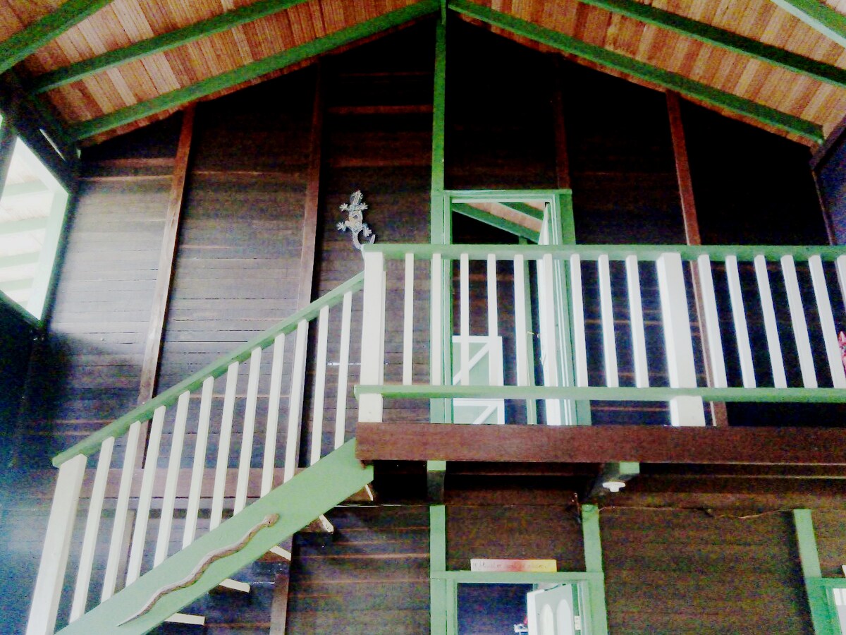 Красивий двоповерховий дерев’яний будиночок без перегородок, з ванною кімнатою та шафою для зберігання одягу на кожному поверсі, обладнаною кухнею та терасою, з вражаючим панорамним видом на всю затоку на висоті 30 метрів над рівнем моря, площею 130 квадратних метрів та красивим садом з квітами та фруктовими деревами, розташований приблизно в 80 метрах від пляжу та недалеко від села. Тут є Wi-Fi та сонячна енергія, що гарантує електропостачання 24 години на добу, оточене незайманою карибською джунглі. RNT 96235