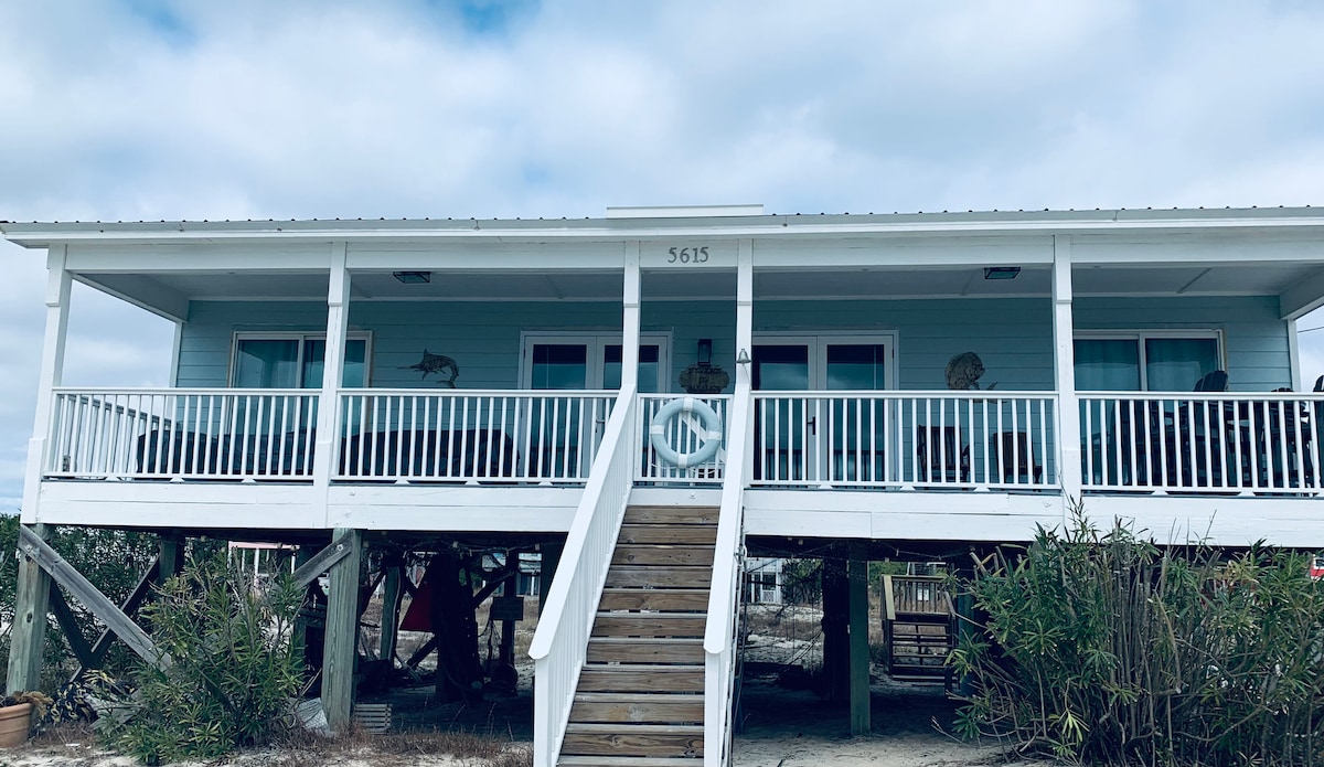 ✔ Directly Across From Beach ✔ All Dogs Welcome, Dog-Friendly Beach ✔ 4 Bedrooms, 2 Bathrooms – Sleeps Up to 10 ✔ Unobstructed Ocean Views from Wrap-Around Deck ✔ Full Putt Putt Course & Corn Hole Under the House ✔ Spacious Deck with Adirondack & Lounge Chairs + Outdoor Shower ✔ Beach Wagon, Chairs, Toys & Boogie Boards Provided ✔ 5 Minutes to Local Restaurants, 20 to Downtown Gulf Shores ✔ High Chair, Pack ’n Play, Linens, Towels & Soaps Included