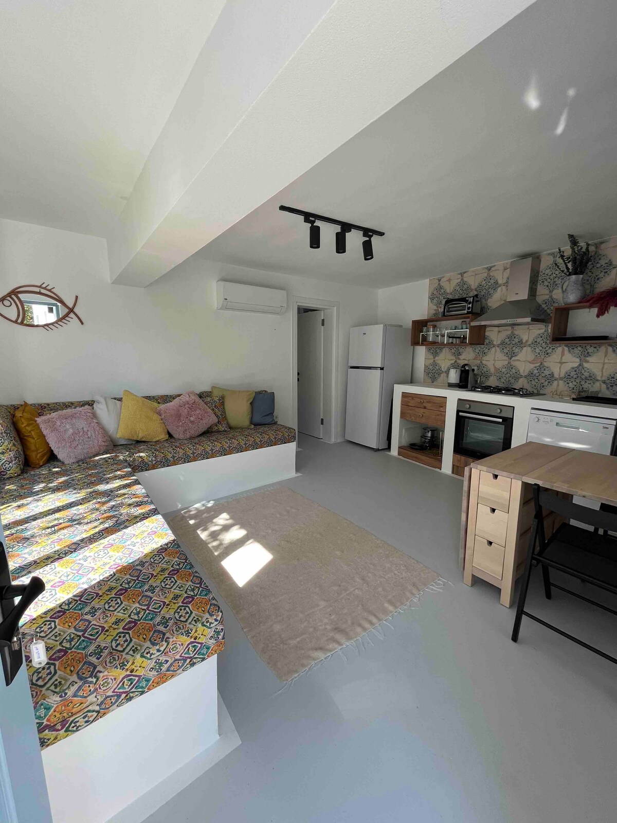 The studio is newly renowated and located at the heart of Bodrum old town. Within 10 min walking distance to the Crusaders castle, 2 min to the bar street. 1 min to the beach. Many restaurants, cafes and shops around.