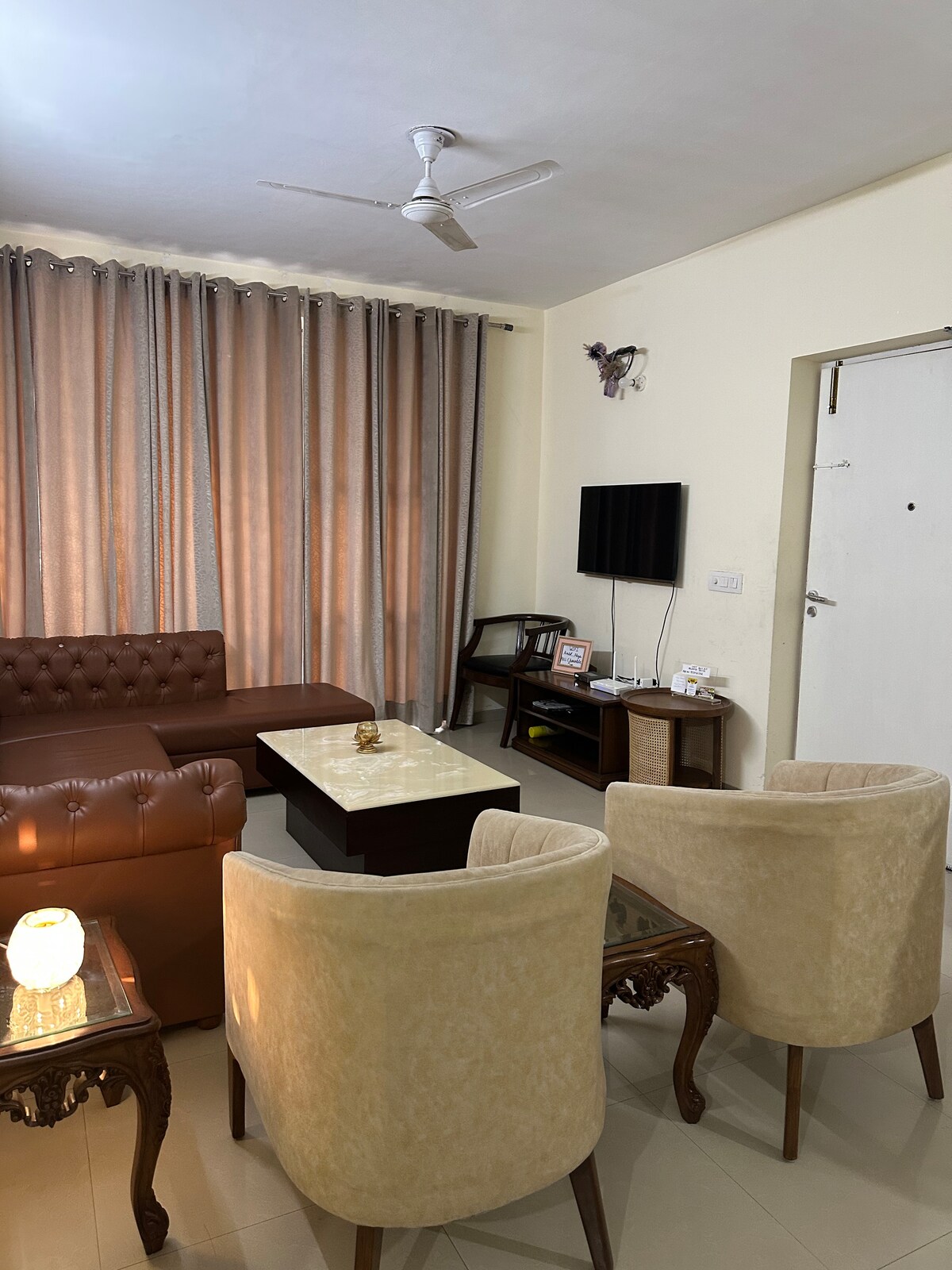 IG: @ab.luxestays LOUD MUSIC NOT ALLOWED! Brand new property! , Fully independent, private 2BHK house with a convenient prime location. Draped in airy whites, flowing curtains and gentle palm-inspired elegance, this space is crafted to feel romantic, peaceful, and beautifully timeless. Perfect for short getaways or longer stays we warmly host couples, families, corporate guests, and intimate celebrations. 🌿 On-call assistance available for comfort, amenities, and a seamless stay!